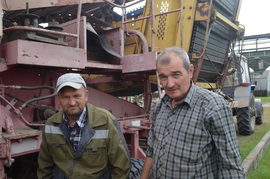 Сама же уборка второго хлеба в ГСХУ непосредственно возложена на опытных картофелеводов – механизатора Владимира Семенкина (он занимается выращиванием картофеля в этом учреждении на протяжении уже 30 лет) и полевода Романа Шпильчука (задействован на механизированной уборке клубней третий сезон). Данный экипаж картофелеуборочного комбайна ПКК-2-02, прицепного к трактору МТЗ-82, в настоящее время трудится в урочище Грабники. Техника, в частности, комбайн, уже порядком изношена (в эксплуатации с 2005 года), но картофелеводы когда прямо на поле, когда на мехдворе ГСХУ самостоятельно и оперативно устраняют возникшую неисправность и продолжают работу без больших задержек. Время дорого: именно сейчас стоит ясная сухая погода, которая способствует комфортной и продуктивной уборке урожая.