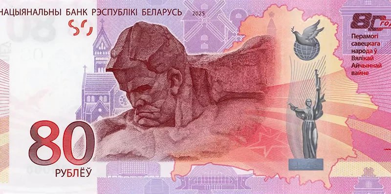 В кассах Национального банка Беларуси снова доступна памятная банкнота номиналом 80 рублей, посвященная 80-летию Победы. Об этом сообщили в пресс-службе финрегулятора.