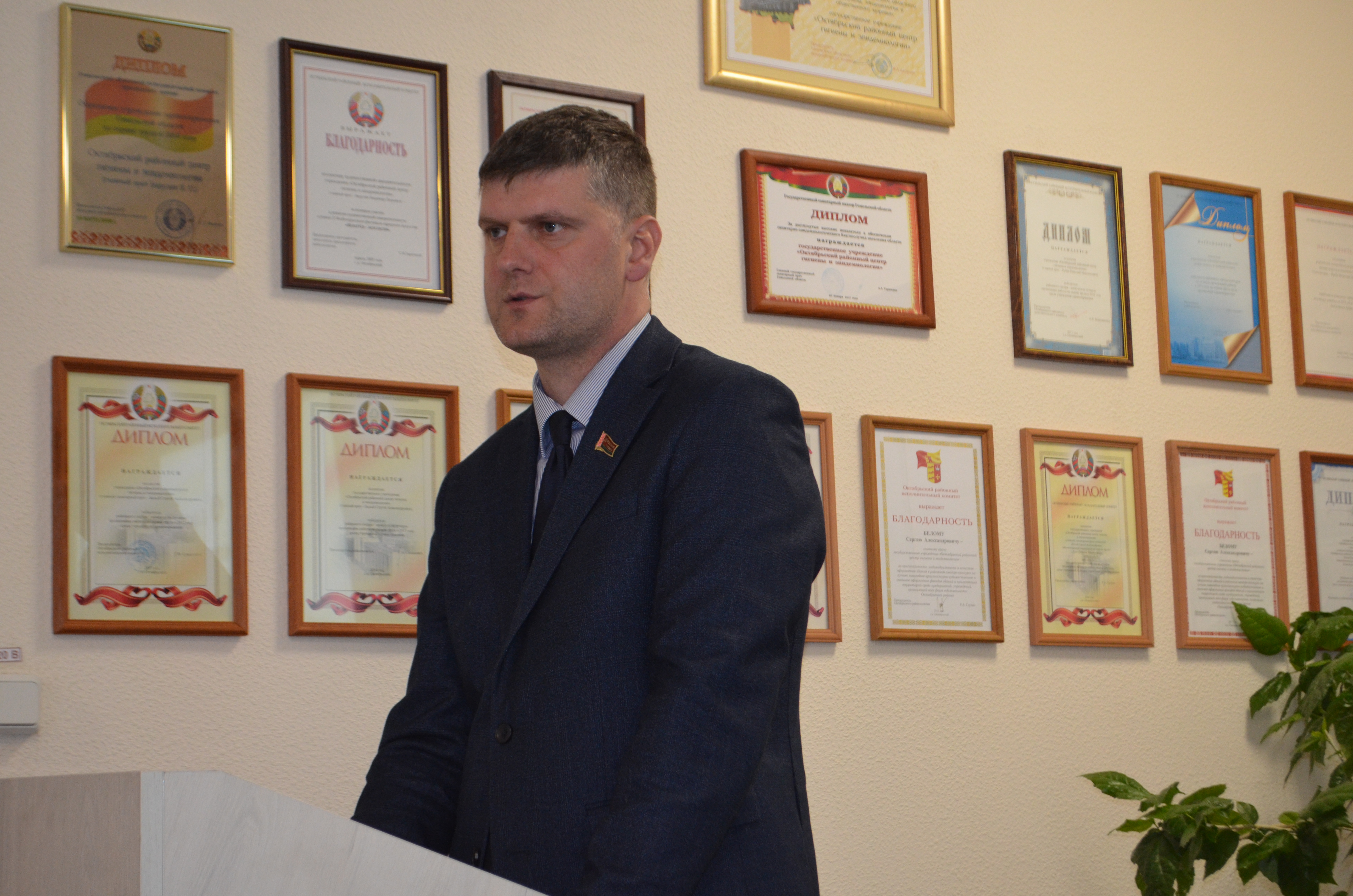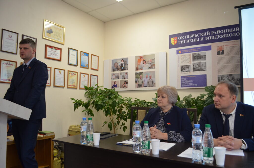 На пленарном заседании районного Дня охраны труда главный санитарный врач ГУ «Октябрьский районный центр гигиены и эпидемиологии» Олег Лукьяненко более подробно остановился на организации и направлениях данной работы в возглавляемом им учреждении, а также озвучил типичные нарушения санитарно-эпидемиологических требований на производственных объектах Октябрьского района, выявленных санитарной службой в ходе постоянных рейдов, проверок и мониторингов. Присутствующий на мероприятии заместитель начальника Жлобинского межрайонного отдела Департамента государственной инспекции труда Валерий Любогощев ознакомил с состоянием производственного травматизма за первый квартал текущего года в Гомельской области, а также акцентировал внимание аудитории на особенностях расследования и учета несчастных случаев на производстве согласно недавно вступившим в силу новым правилам работы на отдельных участках производственной деятельности.