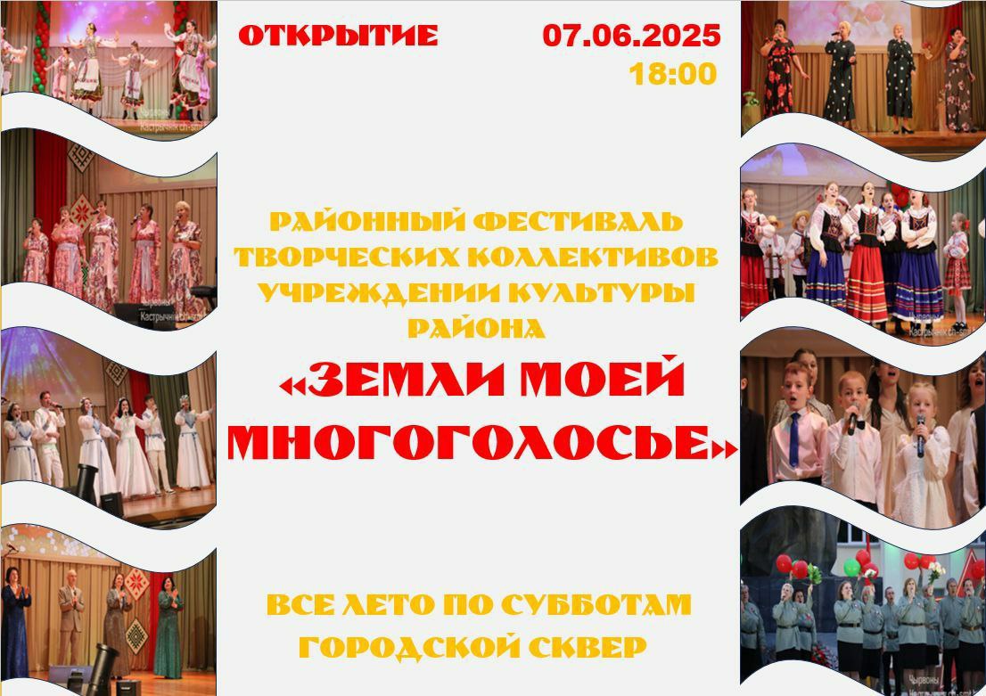 С июня месяца в Октябрьском стартует районный фестиваль творческих коллективов учреждений культуры района «Земли моей многоголосье» Реклама, объявления 23 Май 2025 650 Ждём вас каждую субботу в 18.00 в городском сквере