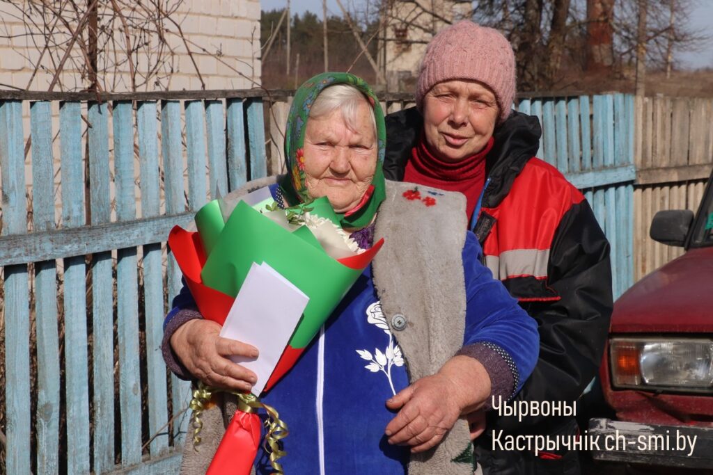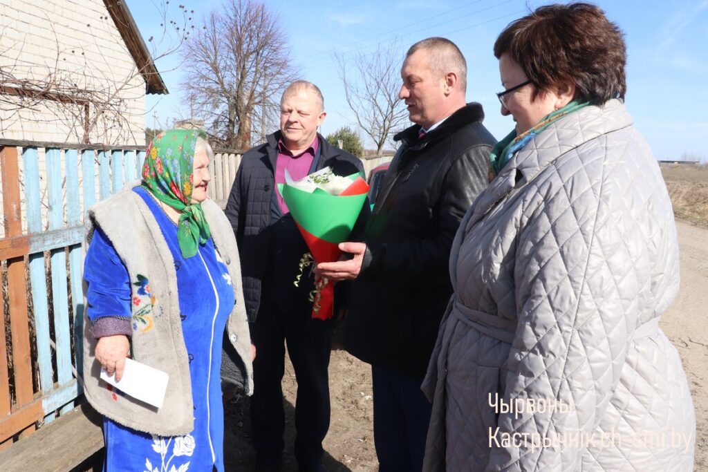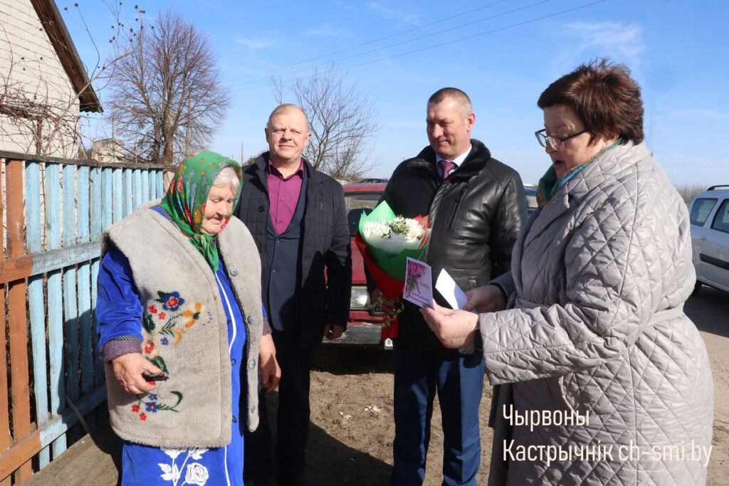 В преддверии 8 Марта, а также в рамках празднования года Великой Победы, поздравления принимали самые старшие женщины района, ветераны войны и труда Анна Алексеевна Петух из Октябрьского и Неля Харитоновна Мельник из Курина. От районного исполнительного комитета, районного Совета депутатов, районной организации общественного объединения «Белорусский Союз Женщин» с первым весенним праздником их поздравили председатель райсовета депутатов Александр Луцкович, заместитель председателя райисполкома Тамара Казакевич, председатель Ломовичского сельисполкома Михаил Камзолов. Гости адресовали женщинам слова поздравлений от председателя Октябрьского райисполкома Ирины Намоченко с пожеланиями здоровья, мира, добра, благополучия и долгих лет жизни. Вручили женщинам цветы и денежные премии.