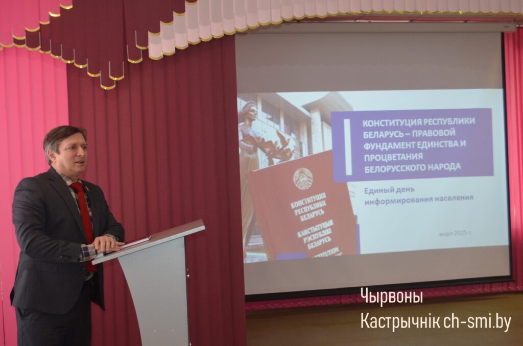 Тема работы Парламента в текущий период, а также значимости Конституции Республики Беларусь как правового фундамента единства и процветания белорусского народа была обозначена и в ходе выступления Николая Маратаева перед аудиторией Октябрьского районного центра творчества детей и молодежи, что было проведено в рамках единого дня информирования.
