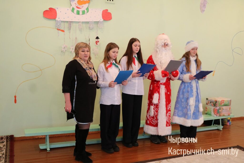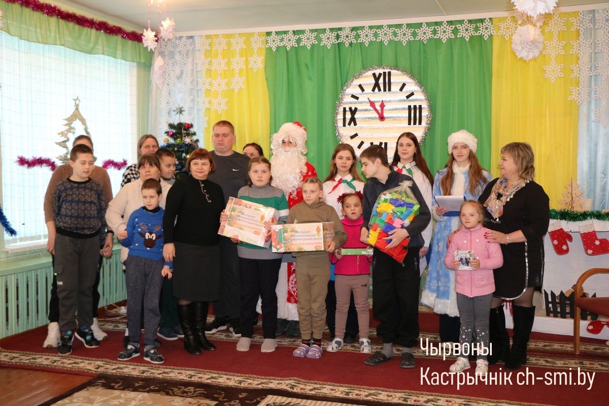 В рамках проведения республиканской благотворительной акции «Наши дети» накануне Старого Нового года воспитанников центра коррекционно-развивающего обучения и реабилитации посетили ребята из волонтерского отряда «Милосердие», действующего на базе Волосовичской средней школы Октябрьского района, вместе с руководителем военно-патриотического воспитания Василием Яльчиком и заместителем директора по основной деятельности Еленой Шестак. И пришли они не одни. Также в гости к детям заглянул Дед Мороз и Снегурочка, чтобы еще раз поздравить с праздником и пожелать всего наилучшего в наступившем 2025-м году.