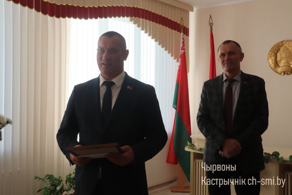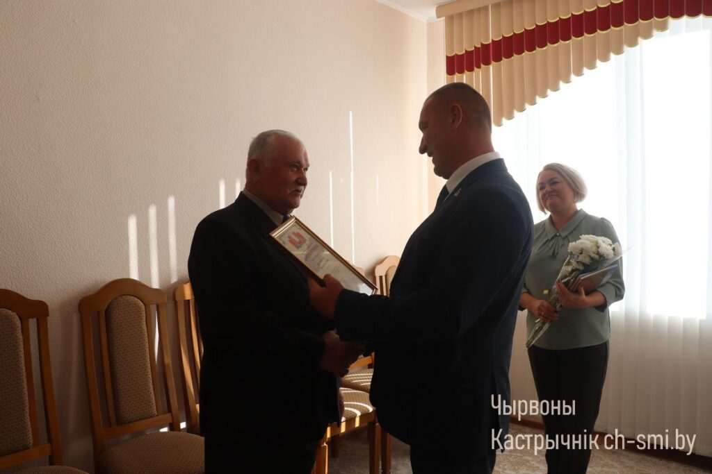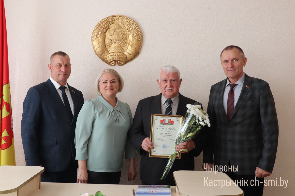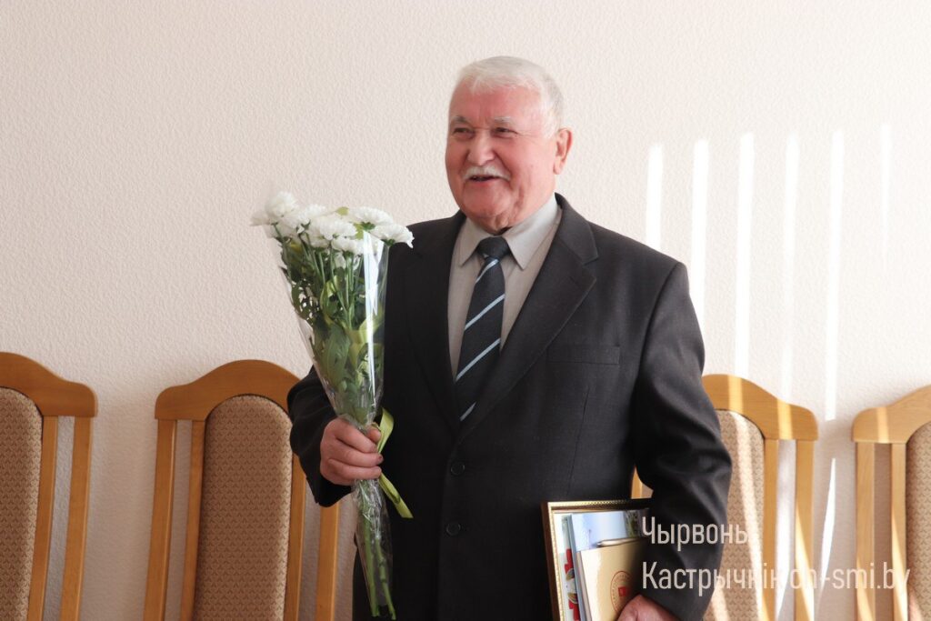 Со знаменательной датой его поздравили председатель Октябрьского райисполкома Ирина Намоченко и председатель Октябрьского райсовета депутатов Александр Луцкович, а также другие представители местной власти и работники райисполкома. Михаилу Васильевичу вручены Почетная грамота райсовета депутатов, цветы и подарки. И конечно, в адрес именинника прозвучало много добрых пожеланий.