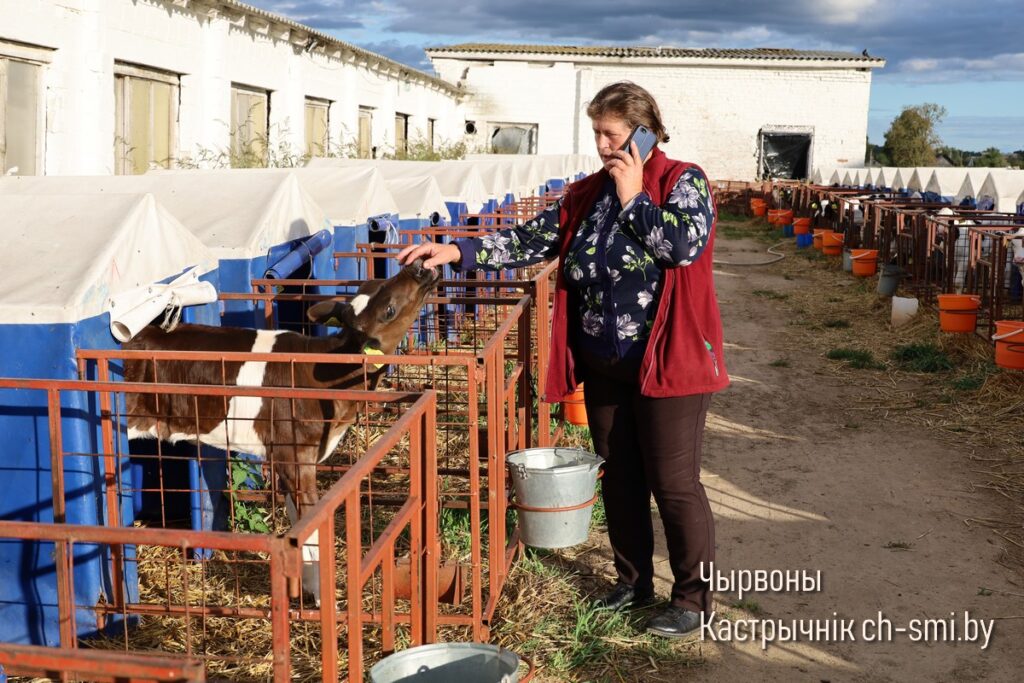 В 10 утра Светлана Перегуд снова на МТФ. Дойное стадо уже на пастбище. Предстоит работа с молодняком. Интересуюсь, не холодно ли будет телятам зимой в уличных домиках? «На свежем воздухе маленькие телята хорошо растут, меньше болеют. Ведь инфекцией быстрее заразиться в закрытом помещении», – убеждает меня опытный бригадир. «В пастбищный период стадо телок находится в летнем лагере на круглосуточном выпасе. Они хорошо там прибавляют в весе. Только следи, чтобы вода была, да клетки вовремя переставляй. Я там бываю раз в неделю. Но каждый день на связи с пастухами», – рассказывает дальше о своей работе Светлана Владимировна.