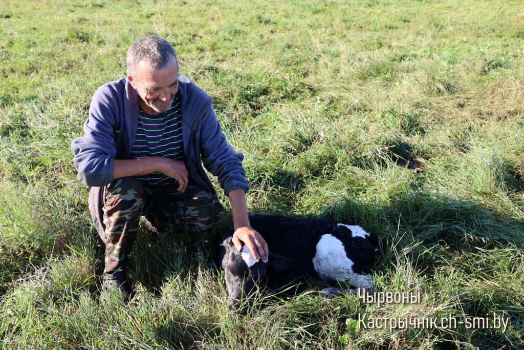 В 8 часов едем на поле. Возле Грабья стадо коров обслуживается передвижной доильной установкой. «Доярки уже давно там, а я приезжаю в 8 утра и 8 вечера. Обязанности те же, что и на ферме. Здесь же и осеменяем коров», – рассказывает Светлана Владимировна. На поле нас ждет хорошая весть: ночью отелилась одна буренка. Новорожденный бычок пополнил многочисленное поголовье животноводческого объекта. После дойки его завезут на ферму и передадут в заботливые руки телятниц.