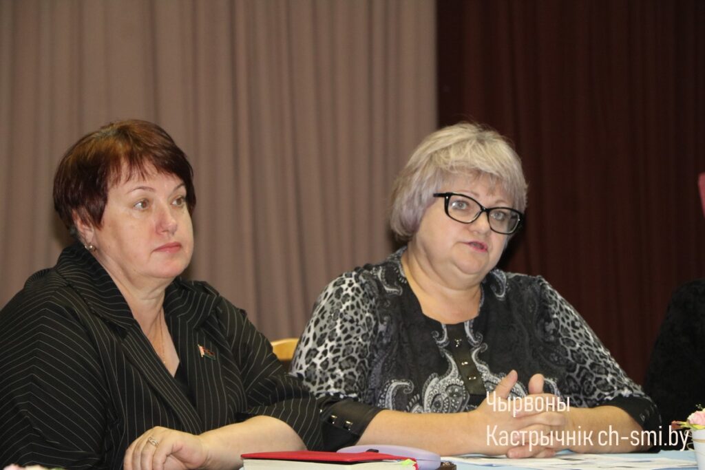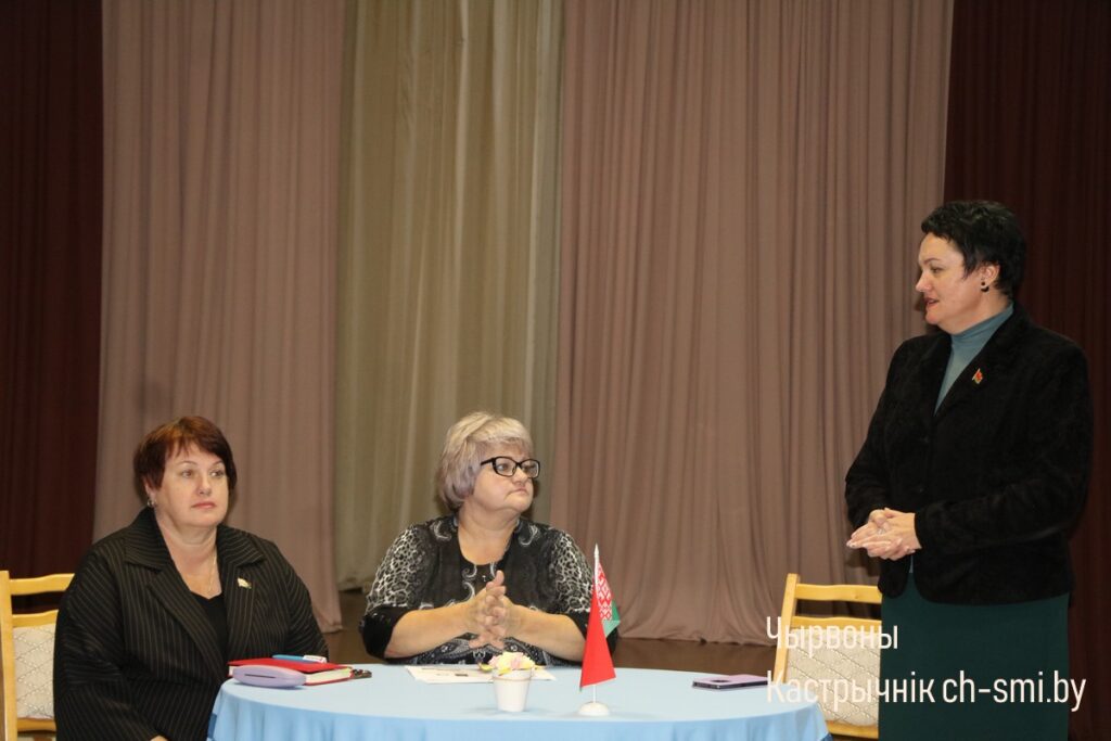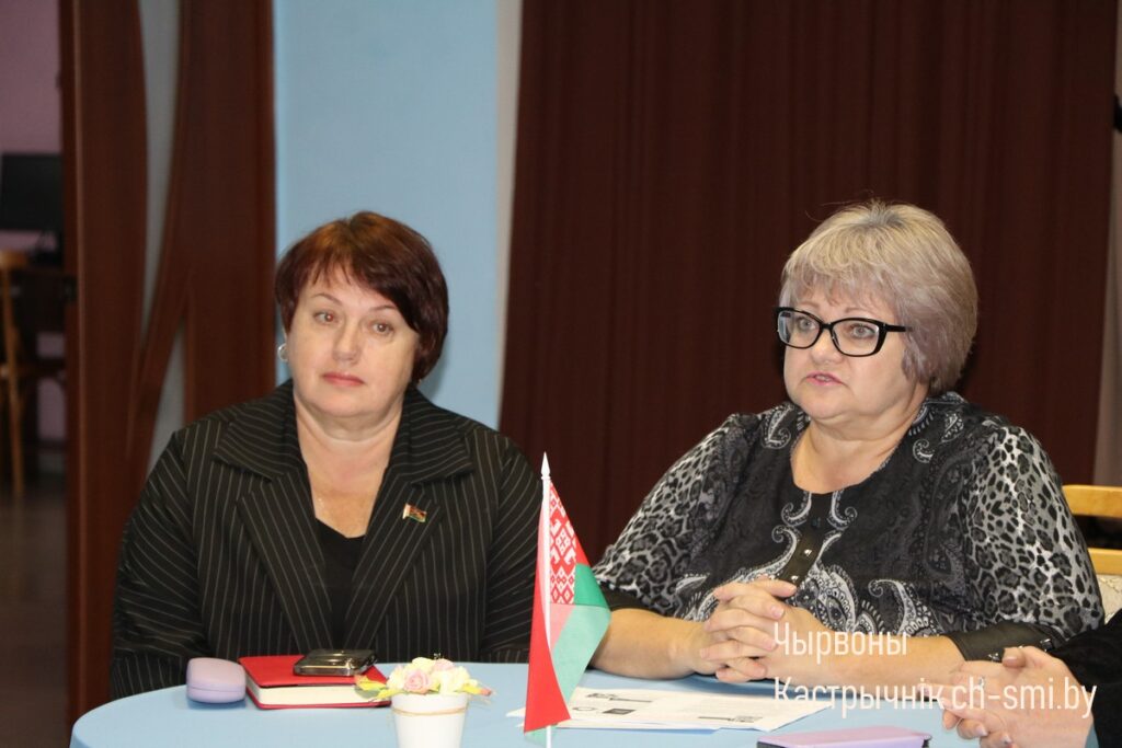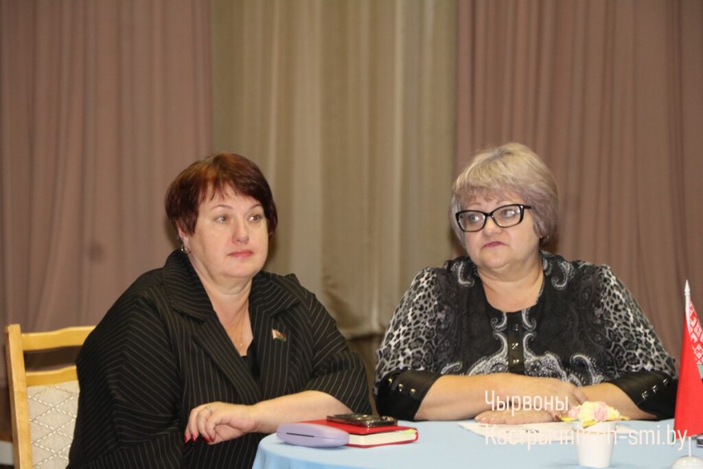 Спикерами выступили начальник управления по труду, занятости и социальной защите райисполкома Татьяна Габинетова и главный редактор редакции газеты «Чырвоны Кастрычнік», председатель районной организации РОО «Белая Русь» Елена Старинович.