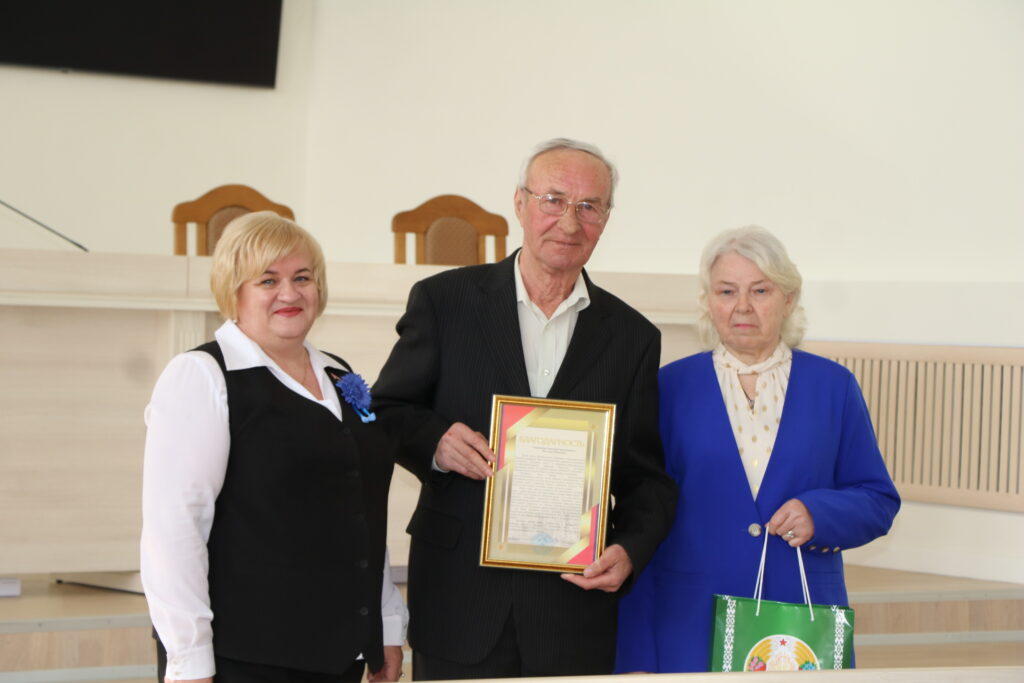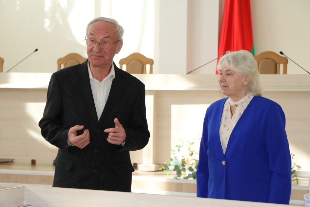 ЭнгелинаИвановна и Геннадий Григорьевич рассказали о своей жизни, семье, детях ивнуках, вспомнили историю своего знакомства и свадьбу, поделились семейнымитрадициями и секретами. За активную жизненную позицию, вклад всоциально-экономическое, духовно-нравственное развитие общества, достойноевоспитание детей, за личный пример семейных ценностей и формирование культасемьи у подрастающего поколения от Октябрьского районного общественногообъединения «Белорусский союз женщин» и отдела загса Октябрьского райисполкомаим была вручена Благодарность и ценный подарок. К присутствующей на встрече молодежи обратиласьтакже первый секретарь РК ОО «БРСМ» Ирина Циуля, которая рассказала о том,какие мероприятия, проекты, акции проводятся в районе для молодых семей