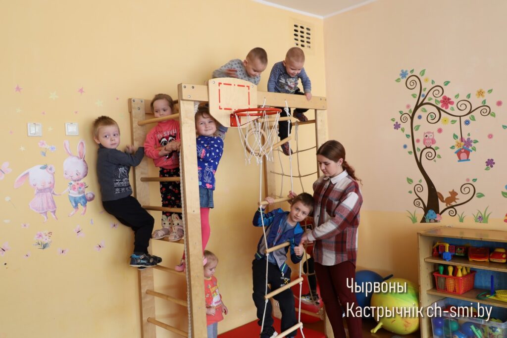Заглядваем у памяшканне дашкольнай групы. Весела тут праводзяць час хлопчыкі і дзяўчынкі. Яны ўсе – рознага ўзросту, самай маленькай крыху болей за два гады. Але выхаванцы сябруюць між сабой, за імі прыглядае выхавацель і яе памочнік. Кацярына Генадзьеўна працуе 4 гады, прыехала дадому пасля заканчэння Рэчыцкага дзяржаўнага педагагічнага каледжа. Расказвае, што работа з дзецьмі вельмі падабаецца, а ў родным калектыве працаваць удвая лягчэй.