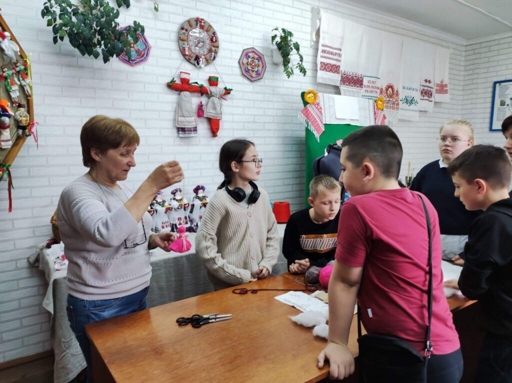 Октябрьский районный дом ремесел посетили школьники из г. Мозыря. Для детей провели познавательный обзор «Древо народных ремесел». Ребята узнали о многообразии народных кукол, особенностях белорусской традиционной вышивки и костюмах нашего региона, познакомились с ремеслом соломоплетения и гончарства. Для юных посетителей мастера дома ремесел продемонстрировали мастер-класс по изготовлению куклы из ниток и вышивке.