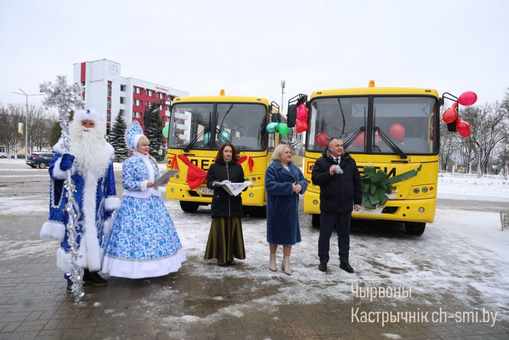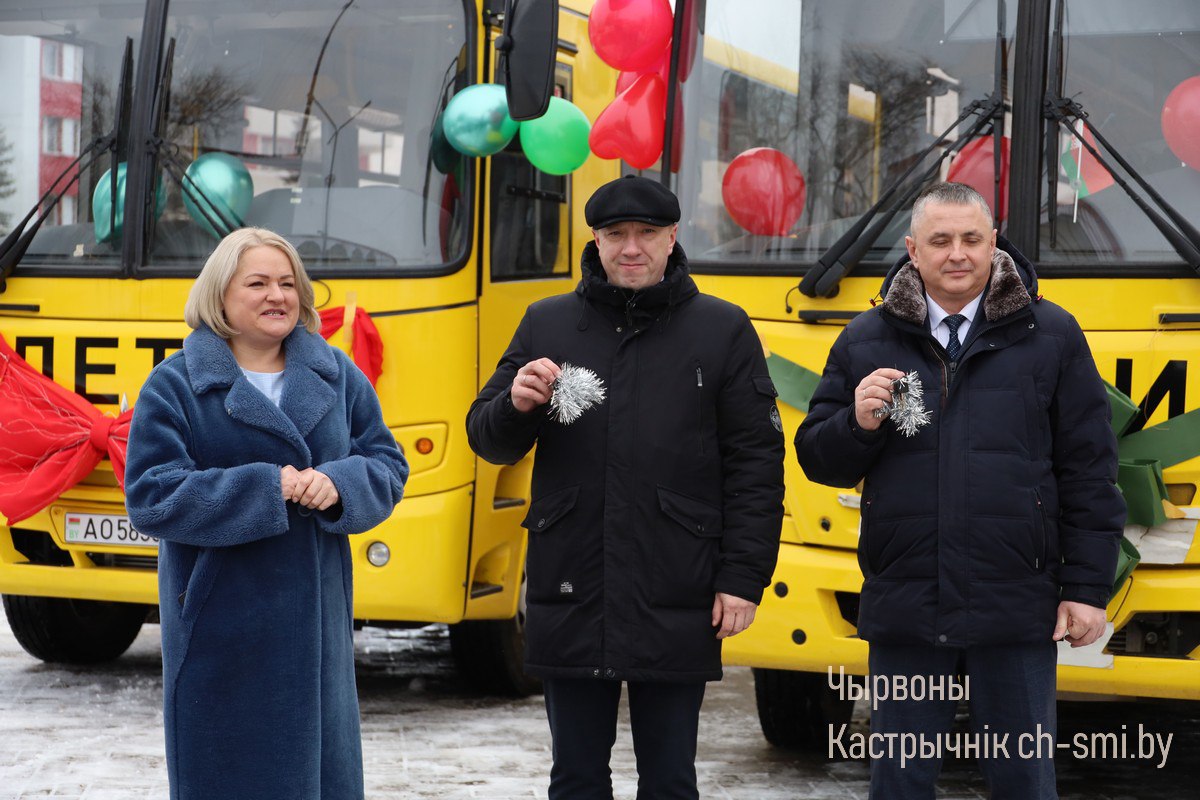 Новые школьные автобусы в канун Нового года поступили в Октябрьский район для комфортного подвоза ребят. Ключи от автобусов начальнику отдела образования райисполкома Андрею Кадолу и управляющему государственного учреждения «Центр по обеспечению деятельности бюджетных организаций Октябрьского района» Александру Арчугову вручила председатель Октябрьского райисполкома Ирина Намоченко.