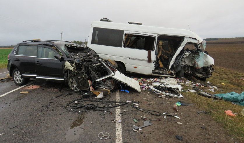 В момент аварии в салоне микроавтобуса находилось 14 пассажиров, ни один из которых не был пристегнут ремнями безопасности. В результате ДТП 6 человек погибли, 7 получили травмы различной степени тяжести. Водителя легкового автомобиля госпитализировали с легкими телесными повреждениями, его пассажира – с менее тяжкими.