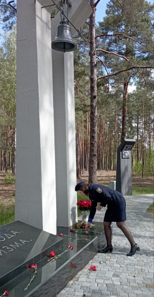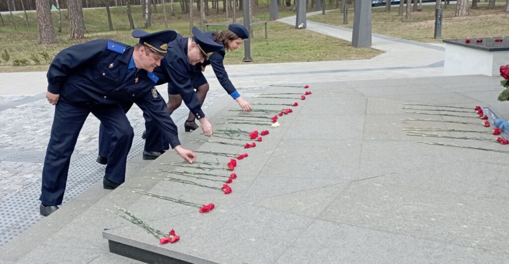 Сотрудники Октябрьского районного отдела Следственного комитета во главе с начальником РОСК Евгением Шрубом в преддверии Дня Победы посетили мемориальный комплекс узникам Озаричского лагеря смерти, расположенный на трассе «Р-34» недалеко от поселка Озаричи Калинковичского района.