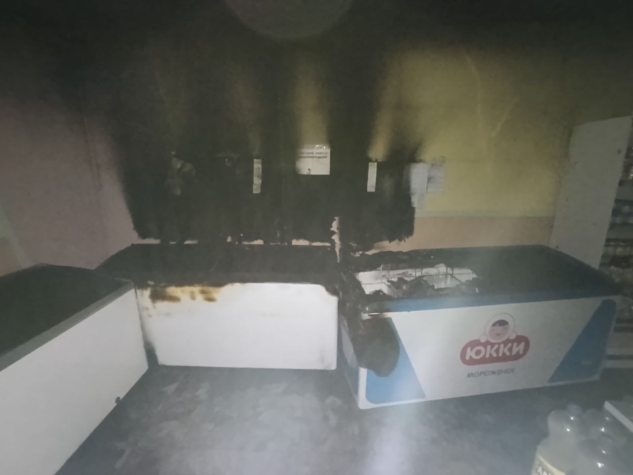 По прибытии спасателей к месту вызова наблюдалось плотное задымление внутри магазина. На момент возникновения происшествия посетители и рабочий персонал в магазине отсутствовали. Пожар ликвидирован самопроизвольно, до прибытия подразделений МЧС. В результате пожара повреждены стены, морозильные камеры и товары.