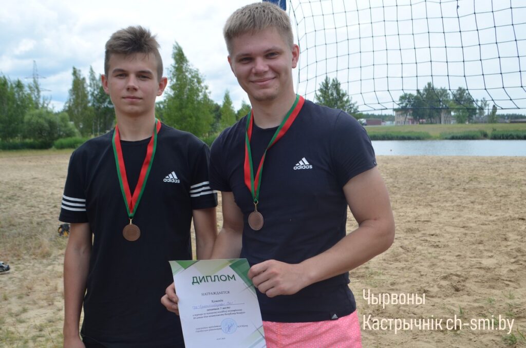 В матче за 3-е место в упорной борьбе сильнее и выносливее оказались представители Краснослободского учреждения образования Никита Асмыкович и Александр Цагельник, которые по партиям 15:13 и 15:7 обыграли соперников из команды «Валики» и удостоились «бронзы» праздничных соревнований.