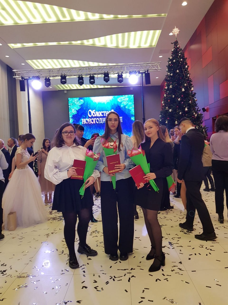 Традиционно в конце декабря в Гомеле проходит областной новогодний бал. В этом году его провели в общественно-культурном центре. Из рук председателя Гомельского областного исполнительного комитета Ивана Крупко 50 учащихся школ, гимназий, лицеев и колледжей получили свидетельства за высокие результаты в учебе, творчестве, общественной жизни. Премии облисполкома в этом году получили сразу трое учащихся Октябрьской районной гимназии. Высокие награды привезли домой Каролина Саховская, Алина Гарбар и Анна Целковик.