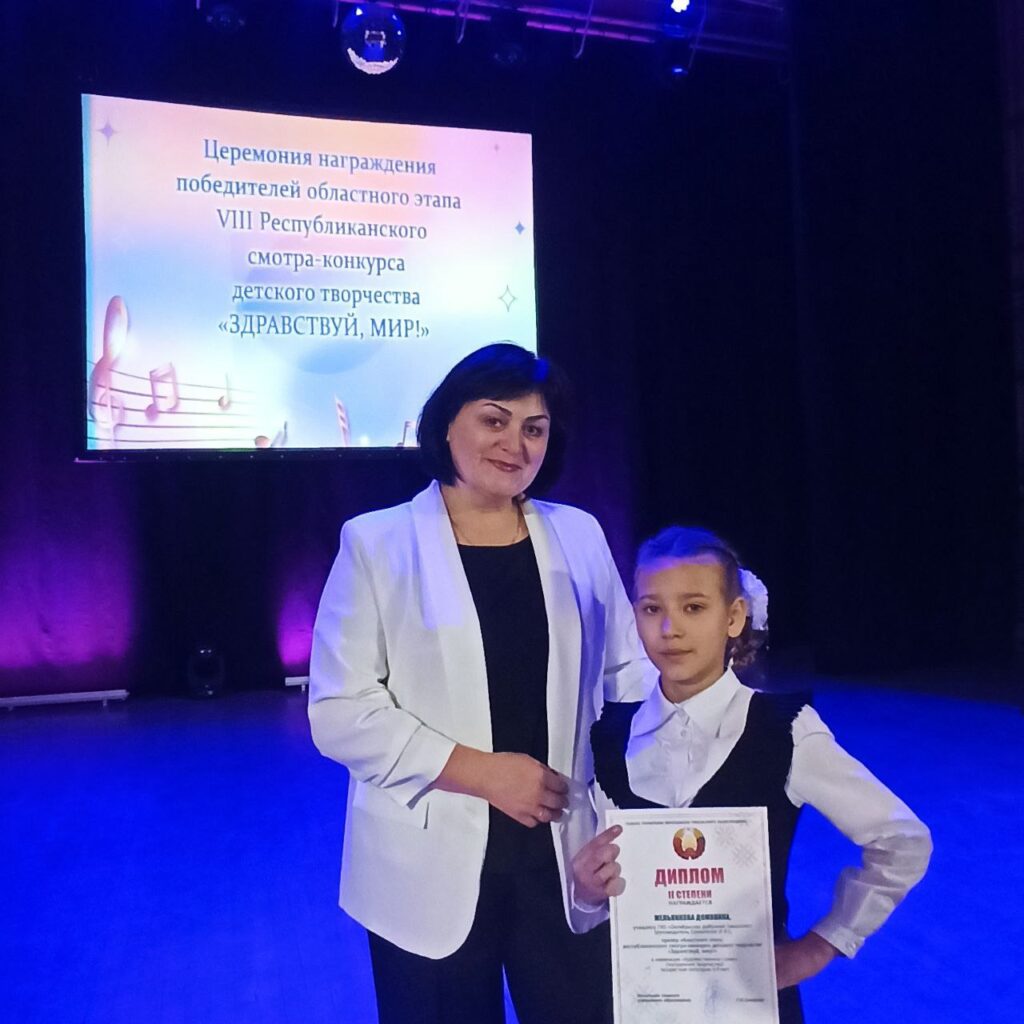 Учащаяся 4 «А» класса Доминика Мельникова Доминика (учитель Инна Ермоленко) награждена дипломом II степени областного этапа республиканского смотра-конкурса.