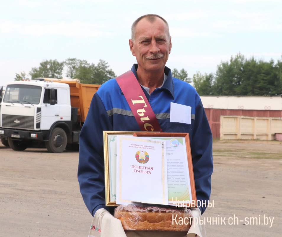 Стоит отметить, что в нынешнем году на жатве в Октябрьском районе лидировали три водителя: первый хлебороб-тысячник из ОАО «Некрашинский» Анатолий Белько, из «Бумажкова-агро» Сергей Дайнеко и Владимир Кондратенко из УП «Октябрьагрохимия». Им все мы благодарны за труд на уборке зерновых, за вклад в общее дело. Это их заслуги. Они – герои нашего времени в нынешних непростых условиях. Как символ добра и достатка, принимали поздравления во время уборки от руководства района и получали караваи-2024.