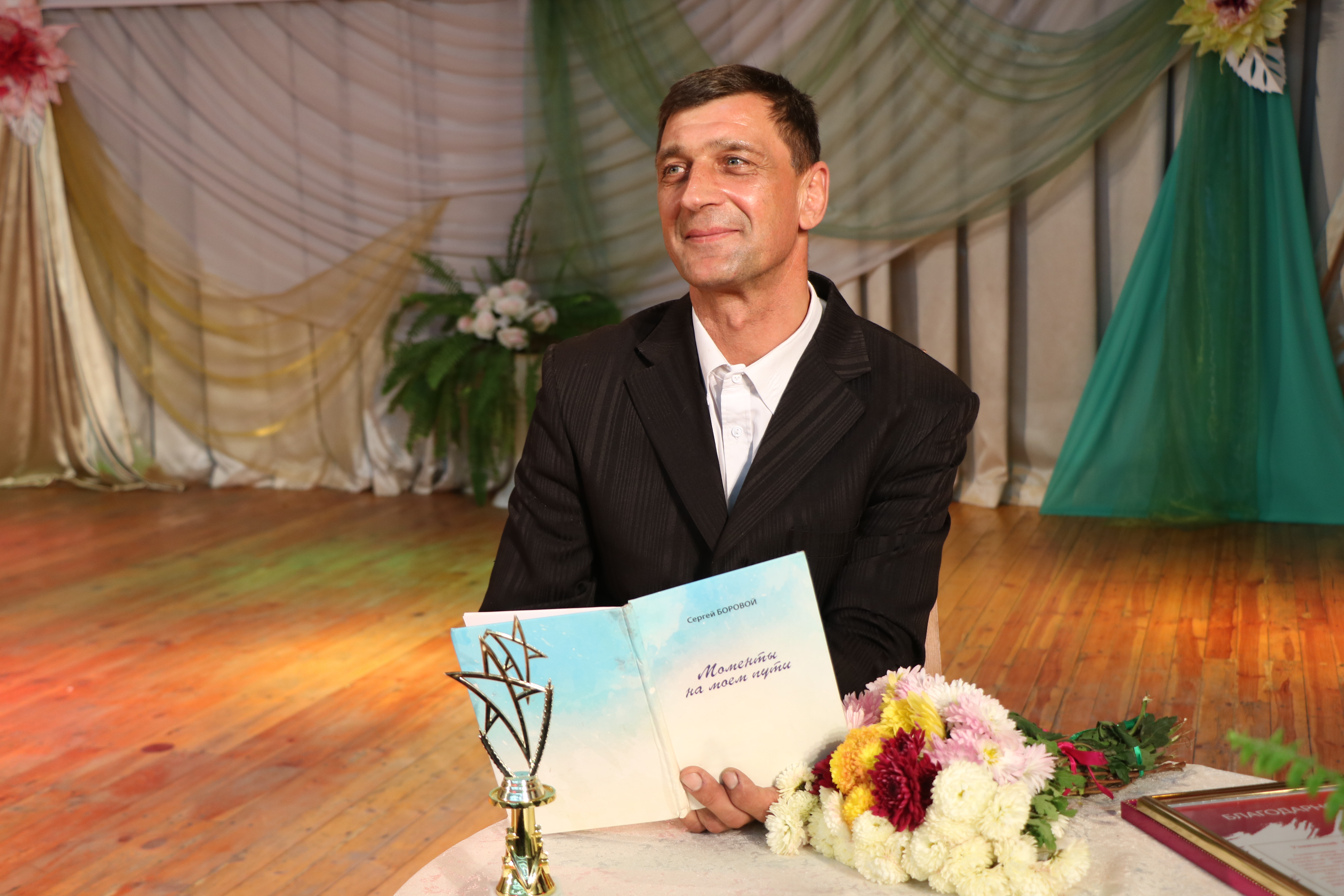 Автору и исполнителю Сергею Боровому от районного центра досуга был вручен приз «Таланту от поклонников». Как отметила директор центра досуга Елена Филипшанова, этот приз олицетворяет звездную россыпь достижений артистов из народа.