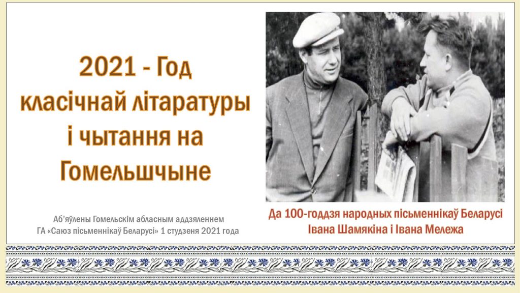 — Менавіта такая назва з’явіласяне выпадкова, — падкрэслівае старшыня абласнога аддзялення ГА «Саюз пісьменнікаў Беларусі», вядомы беларускі празаік і публіцыст Уладзімір Гаўрыловіч. — У рамках Года класічнай літаратуры і чытання пісьменнікі рэгіёна будуць імкнуцца скіроўваць увагу чытачоў да творчай спадчыны народных пісьменнікаў Беларусі Івана Шамякіна і Івана Мележа (100-годдзе якіх мы адзначым у студзені і лютым), запрасіць іх чытаць (ці перачытаць) яркія мастацкія творы мастакоў слова. Дарэчы, у 2022-ім мы будзем адзначаць100-годдзе яшчэ аднаго свайго таленавітага земляка — савецкага празаіка і паэта, выхадца палескай глыбінкі Мікалая Гамолкі. Таму не выключана, што Год класічнай літаратуры і чытання будзе падоўжаны.