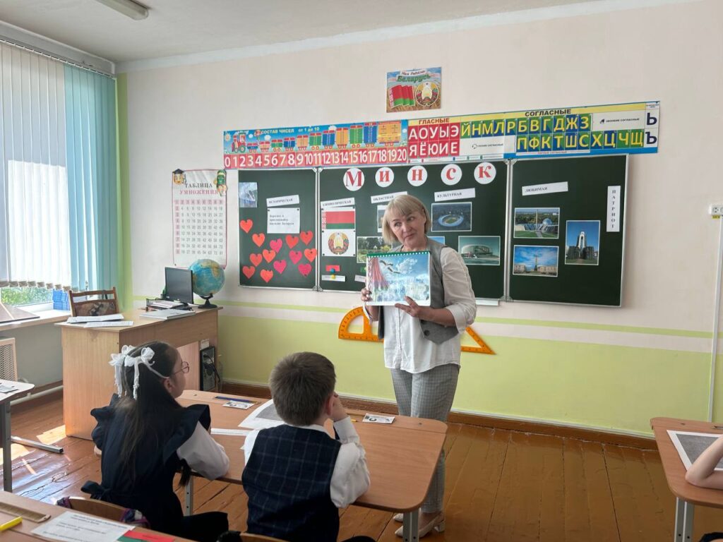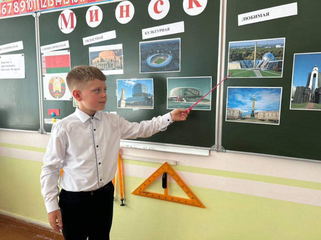 Во время открытого классного часа ребята отправились в город Минск. Там они определили качества настоящего патриота, поговорили о государственных символах и рассказали интересные факты о достопримечательностях самого крупного города Беларуси.