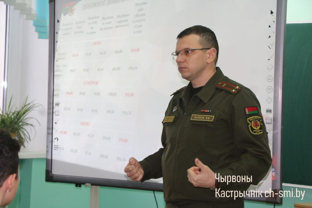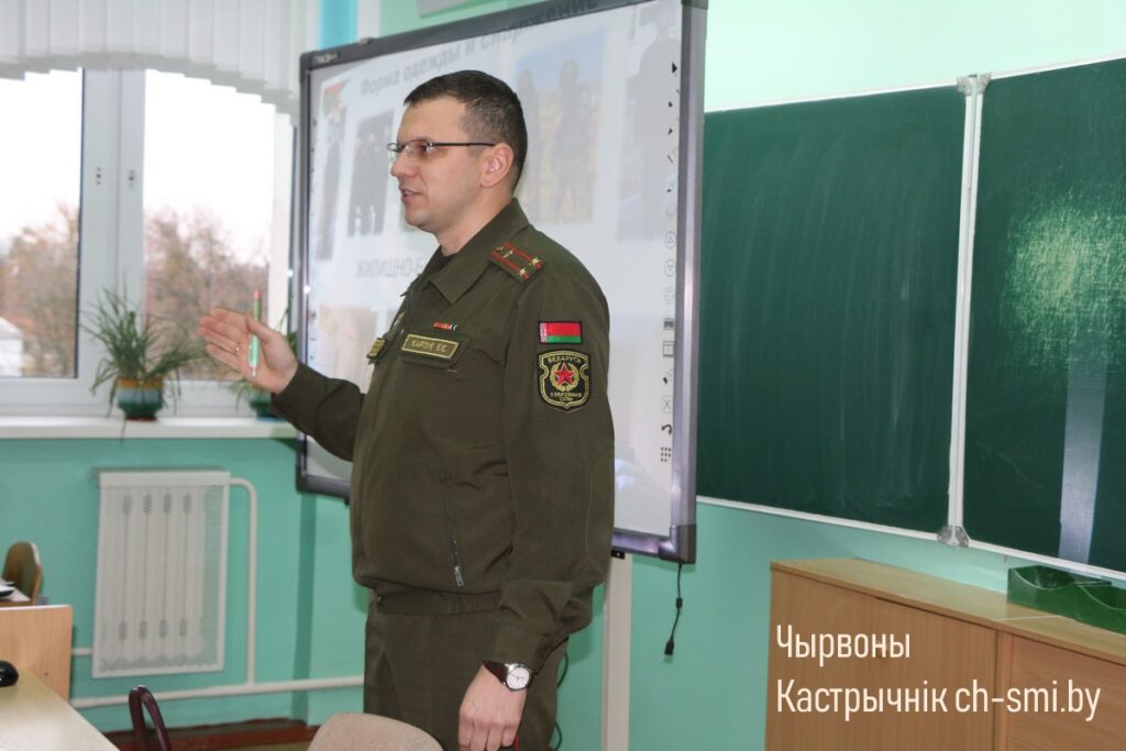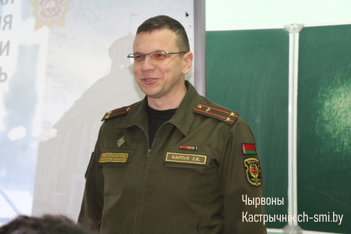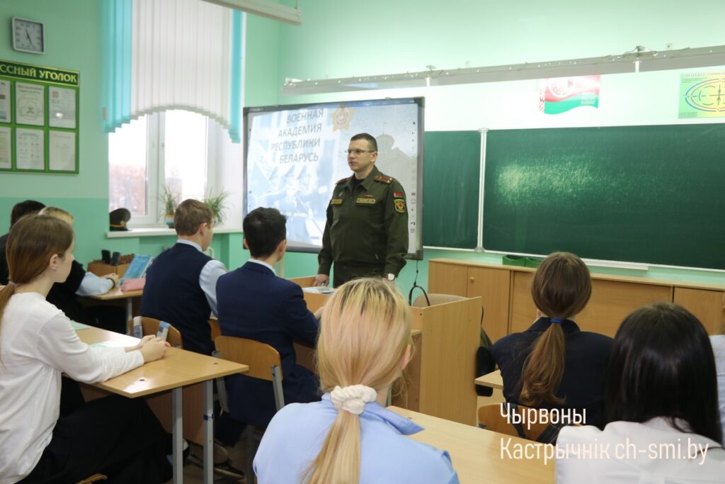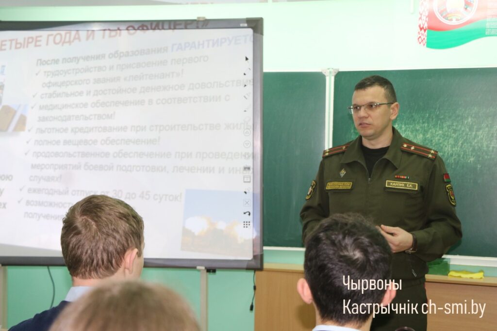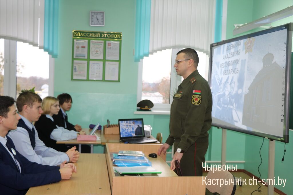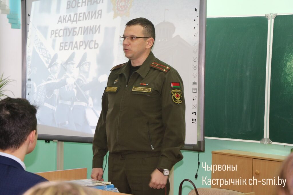 Главным носителем традиций военного образования Вооруженных Сил Республики Беларусь является Военная академия. Так, выбрав профессию офицера, можно получить престижную и востребованную специальность, которая позволит с уверенностью смотреть в будущее. Именно такую возможность и предоставляет данное высшее военное учебное заведение. Об этом речь шла на профориентационной встрече учащихся старших классов средней школы №1 г. п. Октябрьский имени А. Р. Соловья с начальником цикла кафедры связи факультета связи и автоматизированных систем управления Военной академии Республики Беларусь подполковником Евгением Карпуком.