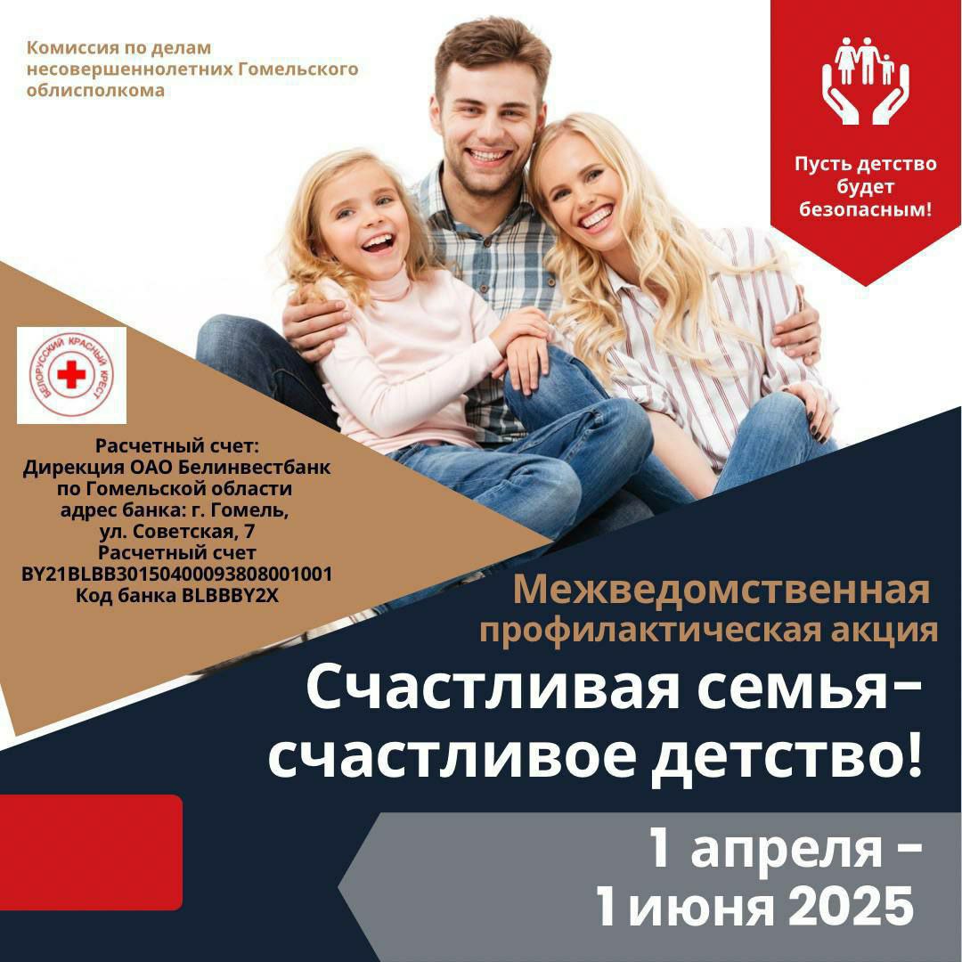 C 1 апреля по 1 июня 2025 года в Гомельской области проводится межведомственная профилактическая акция «Счастливая семья – счастливое детство!».
