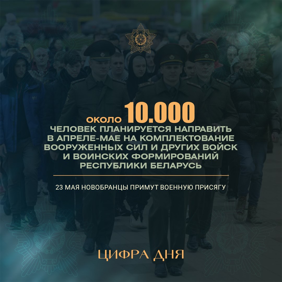 Всего на комплектование Вооруженных Сил, других войск и воинских формирований Республики Беларусь планируется направить около 10.000 человек.