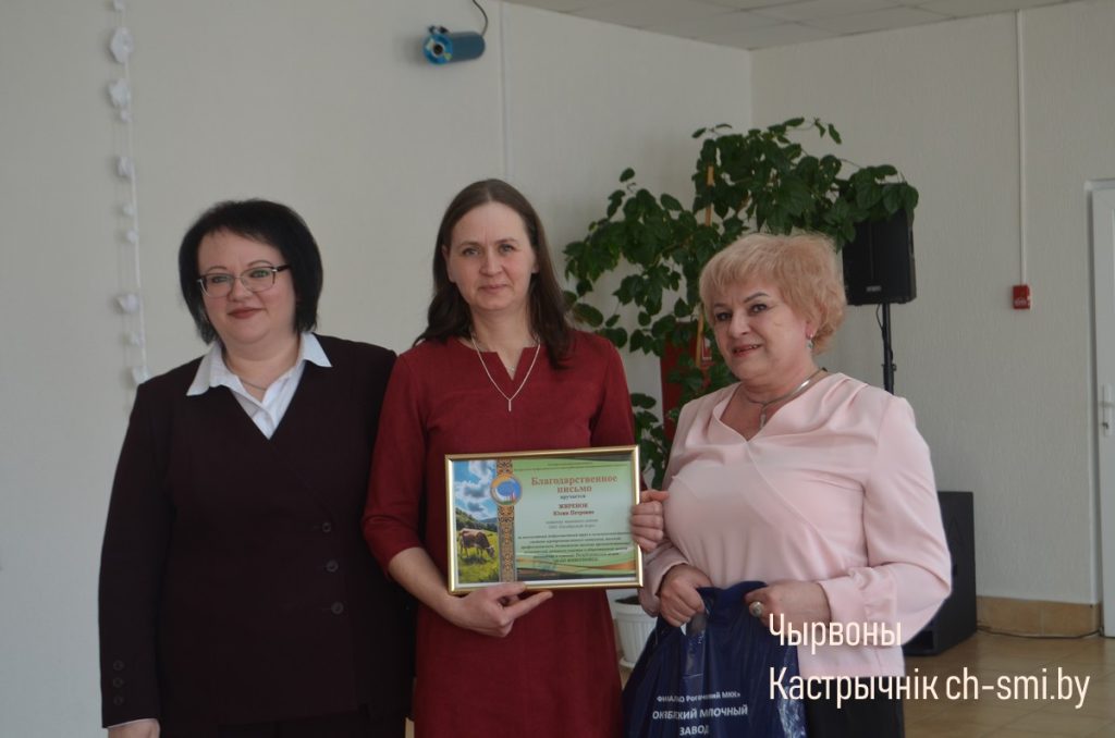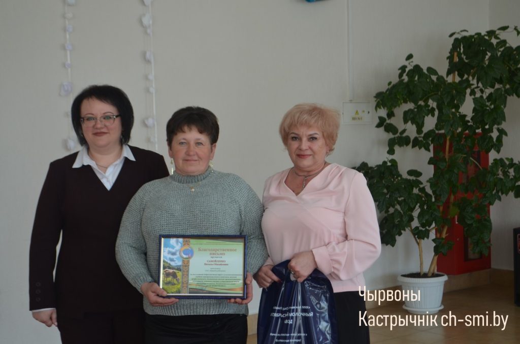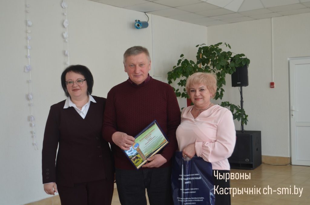 Кульминацией итогового мероприятия стало вручение заслуженных наград победителям районного этапа республиканской акции «Наш животновод». Благодарственные письма райкома профсоюза работников АПК и продуктовые наборы от местного молочного завода получили оператора машинного доения Нина и Ирина Тукач, Ирина и Елена Родомановы из ОАО «Бумажкова-агро», Людмила Сидоренко, Елена Сенько и Татьяна Касьянчик (все – из ОАО «Дербин»), Галина Бастицкая и Ирина Курс (ОАО «Краснослободское»), Юлия Жиренок (ОАО «Октябрьский-Агро»), Светлана Гриневич (ОАО «Моисеевка»), Лилия Хенченко (ОАО «Ломовичи»). Соответствующими наградами были отмечены и животноводы Татьяна Соловьева (ОАО «Дербин»), Дмитрий Жданюк (ОАО «Моисеевка»), Юлия Сажина и Наталья Самойленко (обе – из ОАО «Краснослободское»), Оксана Роговец и Надежда Гончаревич (ОАО «Октябрьский-Агро»), Людмила Звонкович (ОАО «Ломовичи»), а также бригадиры молочнотоварных ферм открытого акционерного общества «Дербин» Марина Хомченко и Валерий Тозик и техник-осеменатор этого же хозяйства Ольга Воробьева. Кстати, Ольга Владимировна, как и ее коллега – животновод Татьяна Соловьева будут представлять наш район на областном этапе указанной республиканской акции, который состоится на следующей неделе в городе Чечерске.