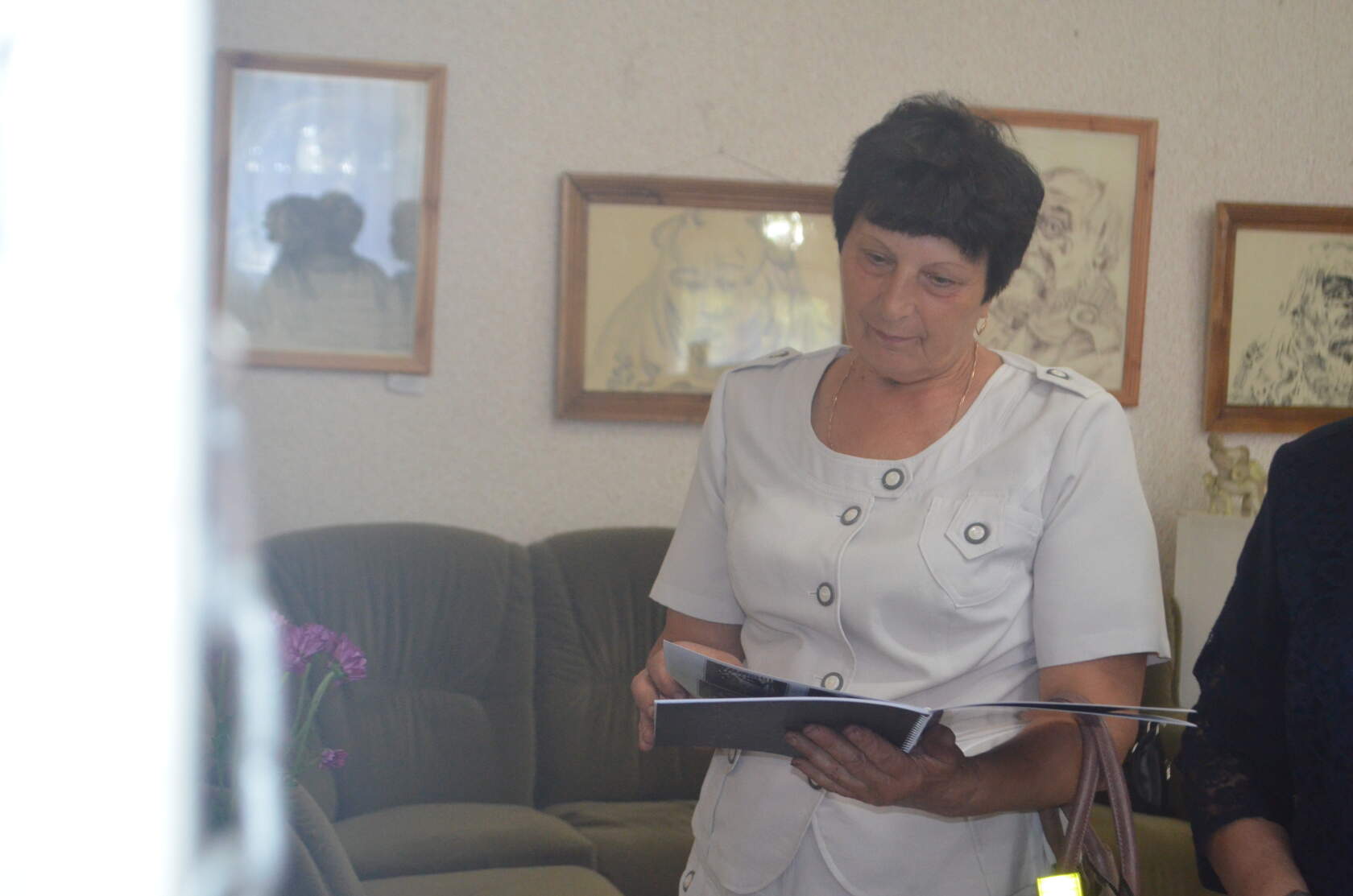 В завершение Елене Кравчук в знак ее таланта и благодарности посетители галереи вручили букеты цветов и сфотографировались с ней на память в окружении ее прекрасных картин.