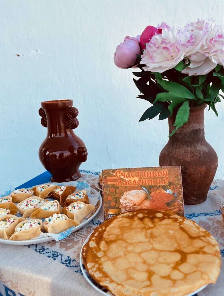 Самовары, разноцветные скатерти, яркие платки создали настоящую масленичную атмосферу.