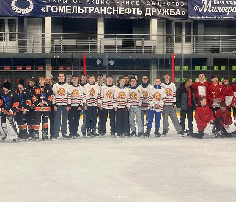Наши юные земляки играли в дивизионе «Б», объединяющем хоккейные сборные районов и городов Гомельщины, где нет физкультурно-спортивных сооружений с искусственным льдом. Команда юношей 2009-2010 годов рождения, представляющих г. п. Октябрьский заняла 4 место, хочется отметить Головаченко Даниила, который стал лучшим бомбардиром данного турнира.