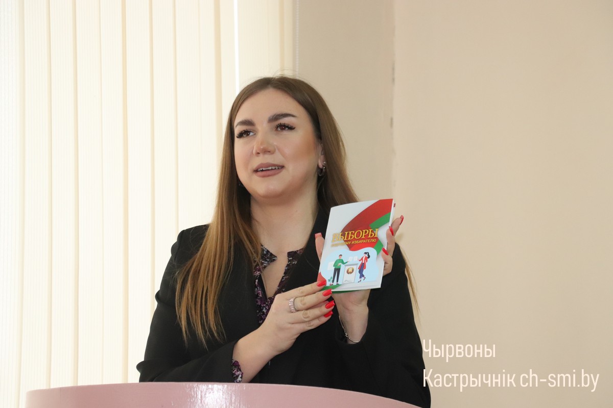 Вначале Ирина Сергеевна презентовала информационно-просветительский проект, посвященный единому дню голосования #ВТЕМЕ.Голосуем. Был дан старт молодежному информационно-просветительскому проекту «Паштоўка.БЕЛ», проведен молодежный республиканский проект «Азбука гражданина. Версия 4.0». Также молодежи был роздан наглядный материал «ВЫБОРЫ! Будущему избирателю».