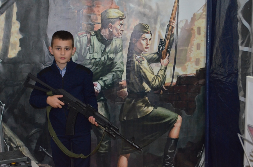 Кроме того, в выставочном зале развернут почти настоящий военный блиндаж, где можно пострелять из лазерных пистолетов и автоматов. Тот, кто наберет больше всего очков, получит сувенир.