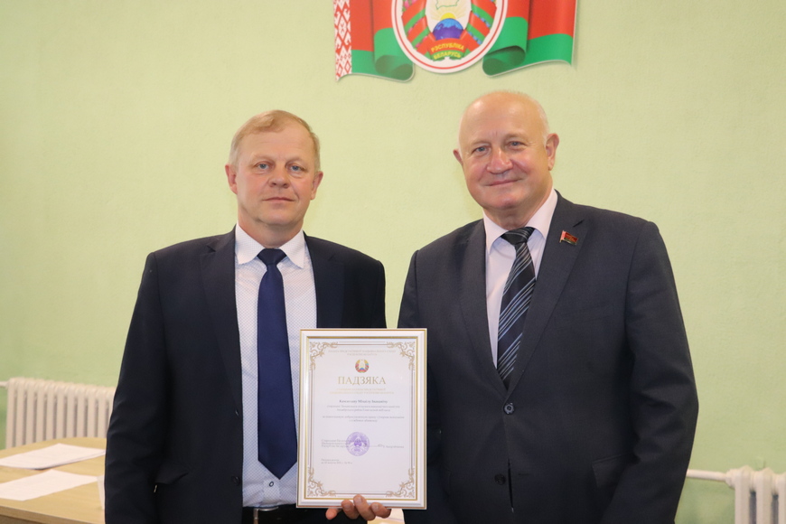 Также Евгений Адаменко вручил председателю Ломовичского сельисполкома Михаилу Камзолову Благодарность председателя Палаты представителей Национального собрания Республики Беларусь Владимира Андрейченко. «Большое спасибо за вашу плодотворную работу, которую вы проводите на территории сельсовета. Желаю вам крепкого здоровья, успехов и отличного настроения.  Продолжайте и дальше трудиться во благо нашей страны», – поздравил Михаила Ивановича Евгений Адаменко.