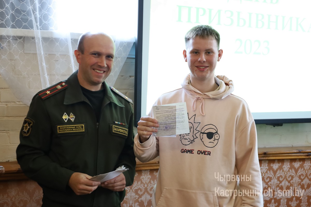 По традиции, накануне отправки юношей к месту службы, в Центре истории и культуры прошел День призывника. В нынешнюю осеннюю призывную кампанию служить в рядах Вооруженных Сил и иных воинских формирований Республики Беларусь отправятся более 30 наших земляков.
