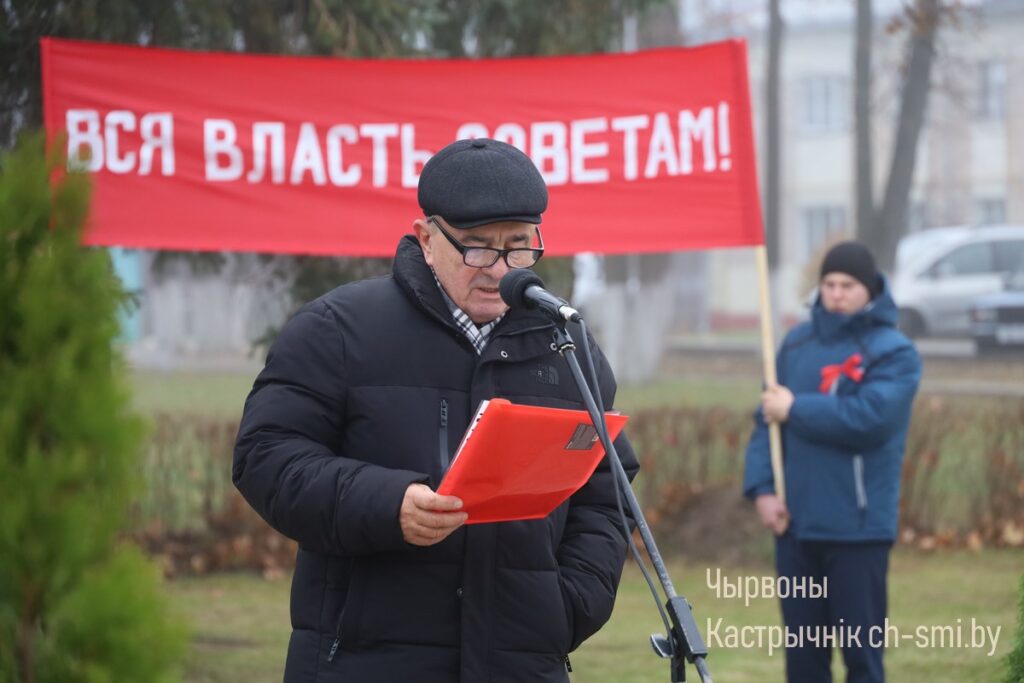 В своем обращении к участникам митинга председатель Октябрьского районного Совета депутатов Александр Луцкович напомнил, что рудобельские коммунары с первых дней событий в Петрограде включились в революционную борьбу.