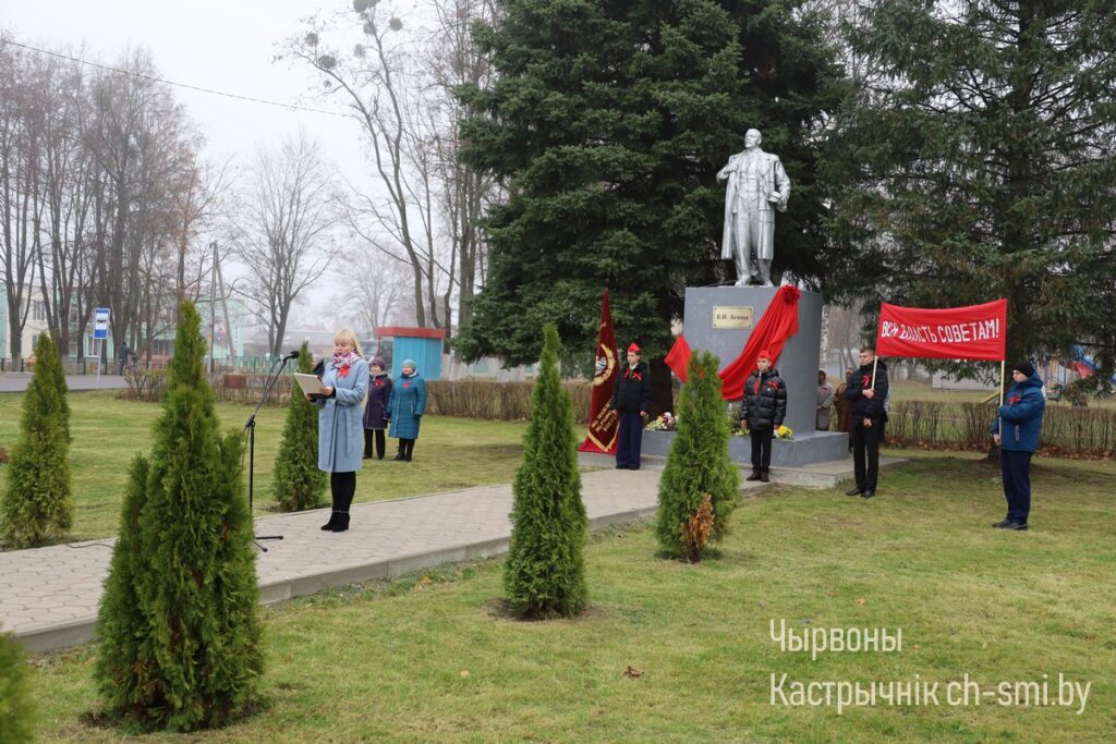 В знак уважения к свершениям Великого Октября, в дань памяти о героических событиях Октябрьской революции от руководства района, активистов районной организации Коммунистической партии Беларуси, трудовых коллективов, общественных организаций, ветеранов и молодежи района к памятнику Владимира Ильича Ленина на Партизанской площади легли живые цветы.