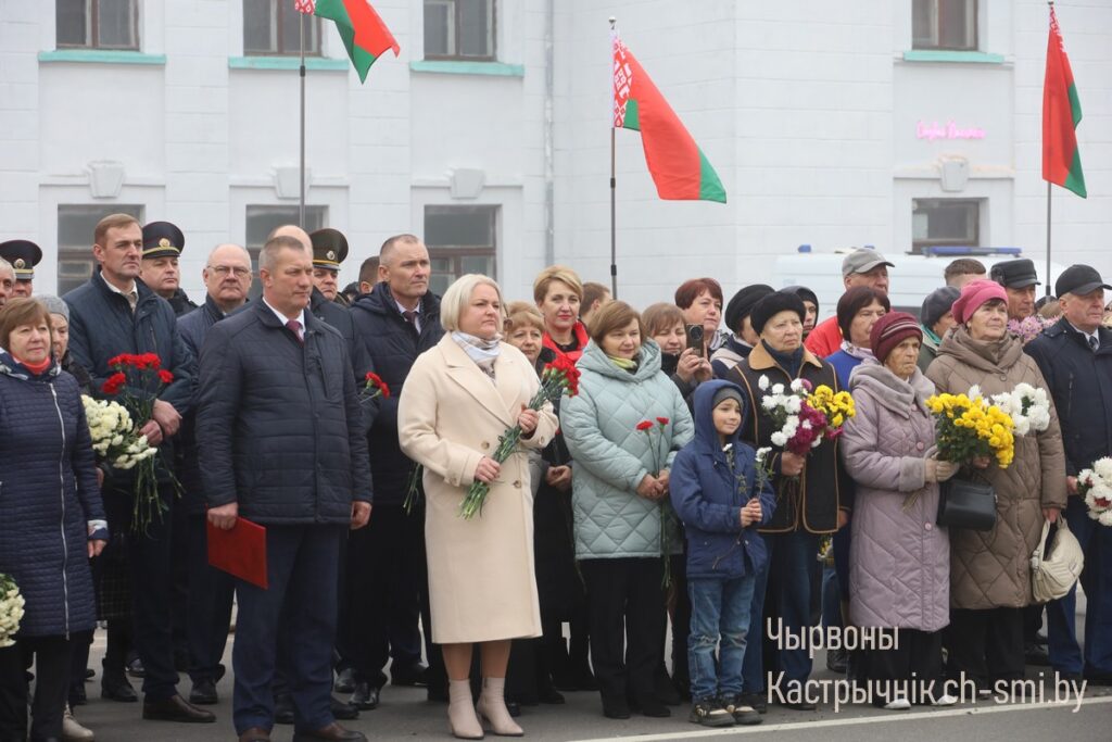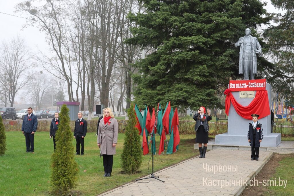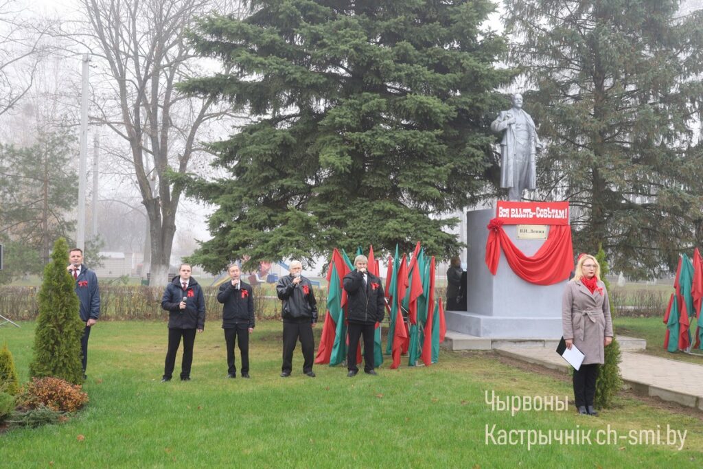 Со 108-ой годовщиной Великого Октября участников митинга поздравила член районной организации Коммунистической партии Беларуси Елена Старинович: «Коммунистическая партия Беларуси опирается на уникальный опыт пролетарской революции и социалистического строительства, накопленный коммунистами Беларуси и всего Советского Союза. Партия продолжает созидательную работу ради прогрессивного развития страны, играет конструктивную роль, отстаивая интересы тех, кто своим трудом и талантом создает материальную и духовную основу сильной и процветающей Беларуси».