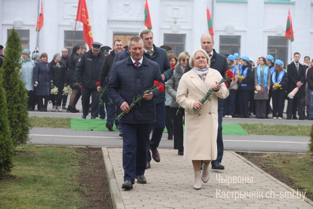 «С первых дней Октября в революционную борьбу за новую власть, за справедливость включились и рудобельские коммунары. В великих событиях в Петрограде принимали участие наши земляки – Александр Соловей, Михаил Левков, Данила Говоровский. Андрей Дробов из населенного пункта Красная Слобода штурмовал Зимний Дворец, участвовал в восстании в Крондштате, подавлении мятежа Карнилова и разгроме Юденича. Среди революционных матросов Балтийского флота были Яков Макеич, Степан Ковалевич, Аким Киселев, – обратился к истории района Александр Луцкович. – Сегодня Республика Беларусь уверенно идет собственным путем развития. Созидательный труд, стремление к социальной справедливости и миру, уважение к истории и традициям – главные факторы консолидации белорусского общества. Нас объединяет общая забота – укреплять экономику родного края, создавать достойные условия для жизни его жителей, обеспечить счастливое будущее детей и внуков».