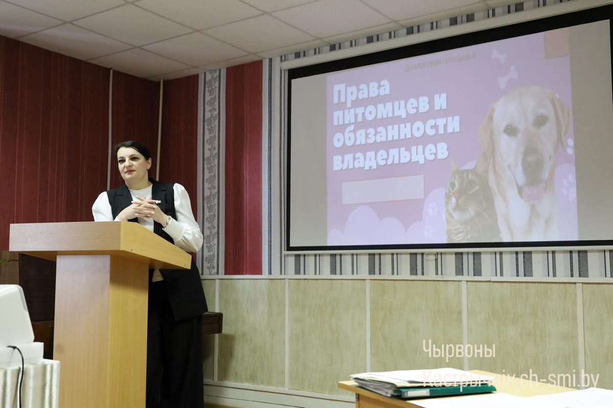 Тема дискуссии была выбрана не случайно. В 2026 году вступил в полную силу Закон «Об ответственном обращении с животными», который затрагивает каждого владельца кошек и собак. С новым документом присутствующих ознакомила специалист по обращениям граждан КЖУП «Октябрьское» Наталья Полуян.