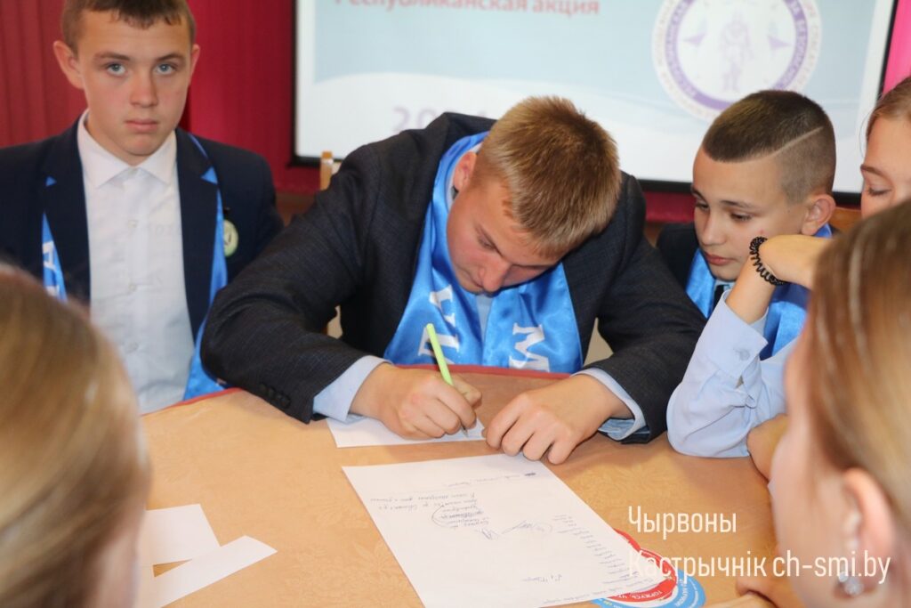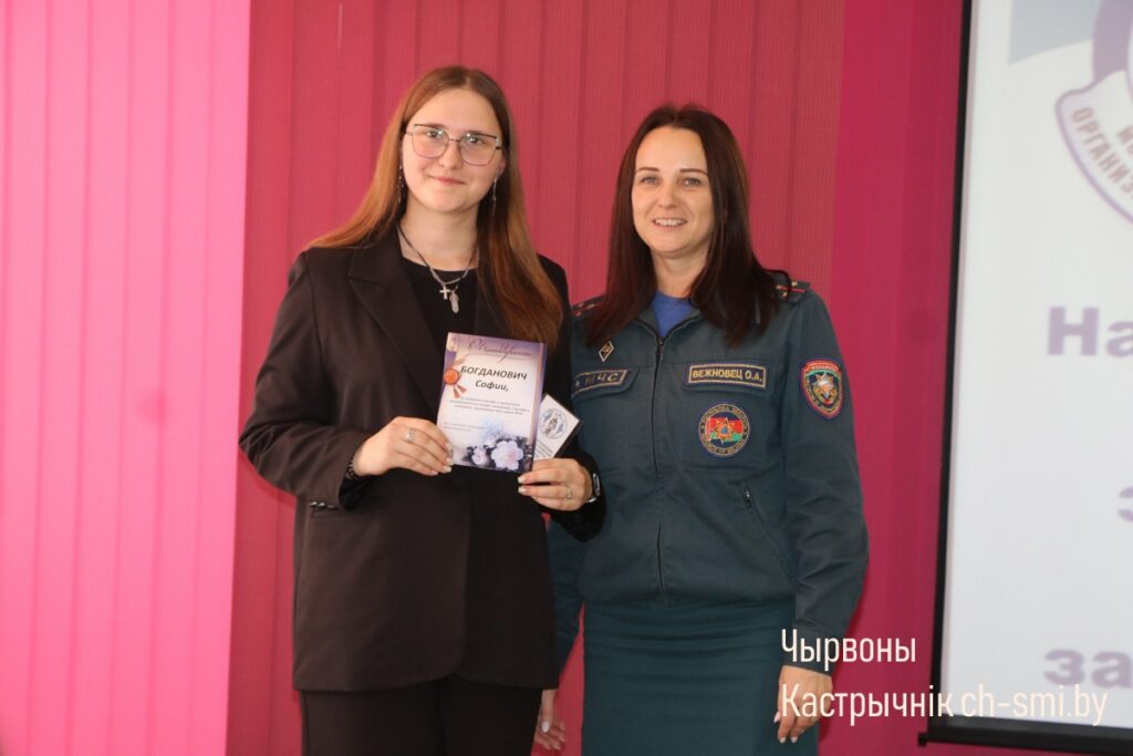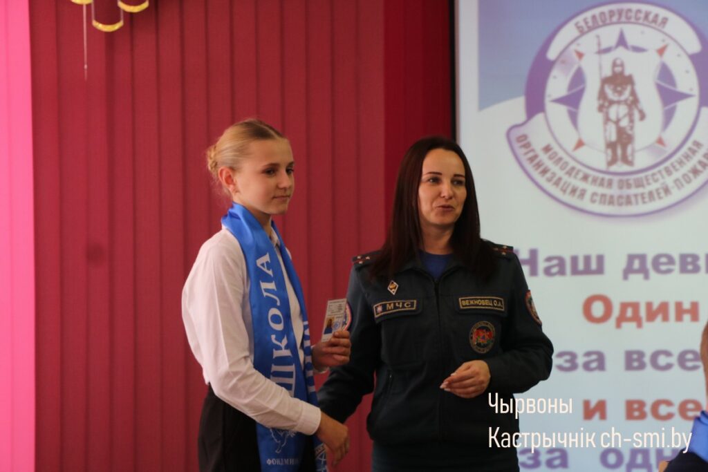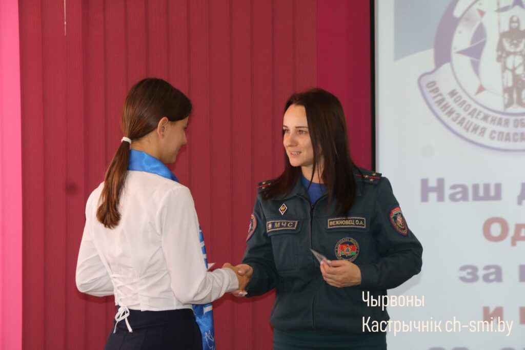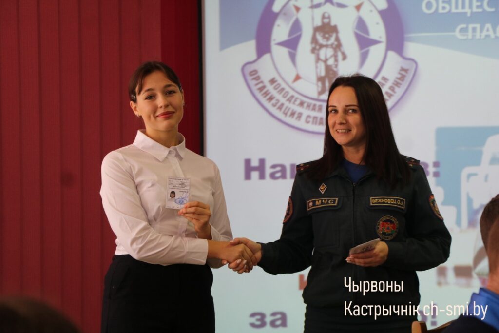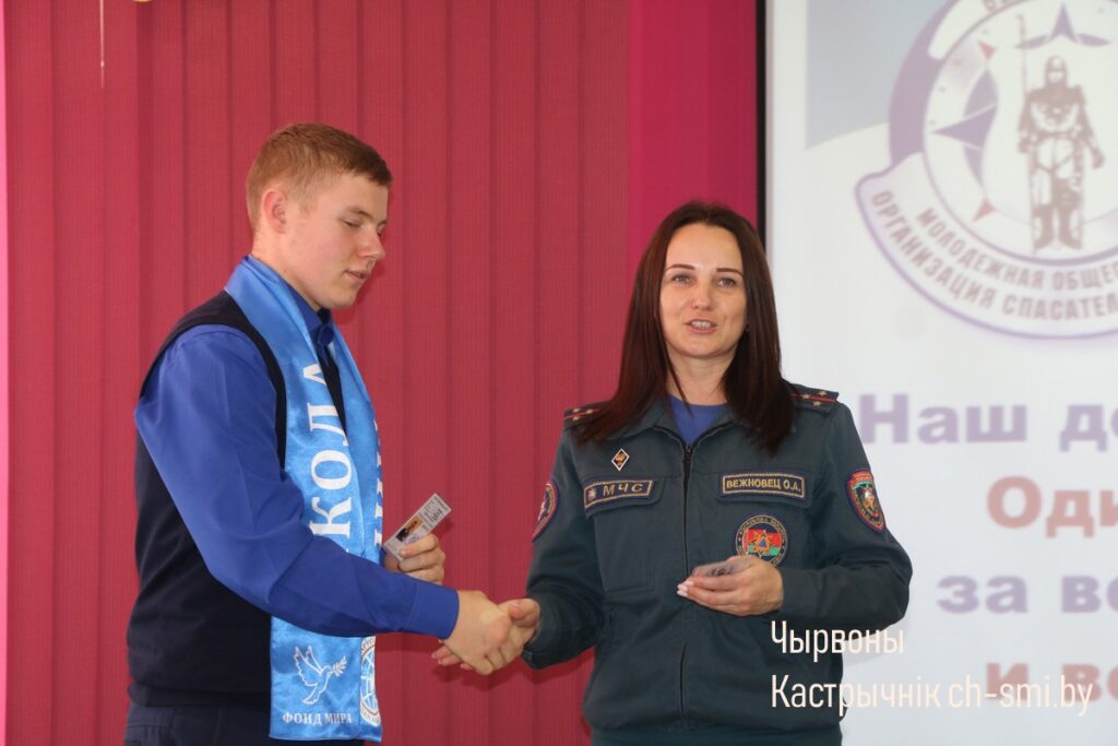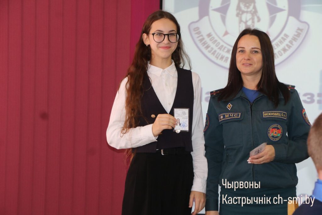 Торжественным моментом стало вручение удостоверений новым участникам, пополнившим ряды Октябрьской районной организации БМООСП. Заслуженные благодарности были вручены секретарем районной организации БМООСП Ольгой Вежновец самым активным учащимся из районной гимназии Виктории Одинец и Софии Богданович.