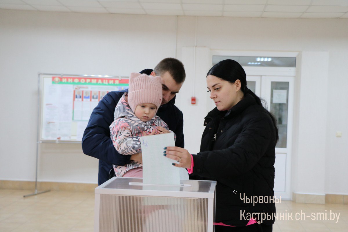 Отдать свой голос за будущего Президента страны пришли люди старшего поколения, молодежь и целые семьи, в том числе с маленькими детьми.