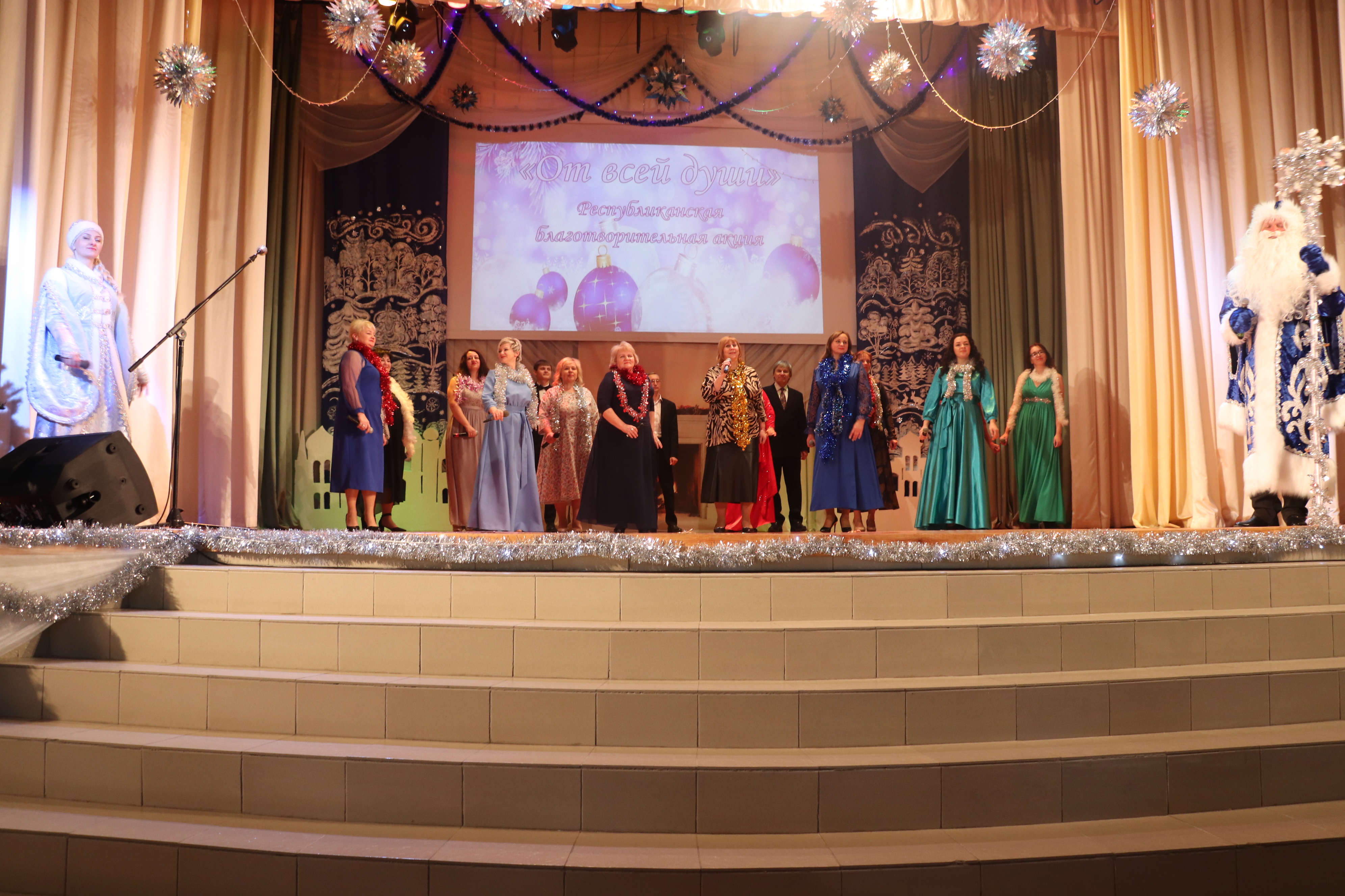 В Октябрьском стартовала акция «От всей души» Общество 26 Дек 2024 1230 Накануне Нового года и Рождества в рамках республиканской благотворительной акции «От всей души» в центре досуга прошел праздничный концерт для ветеранов труда и людей золотого возраста.