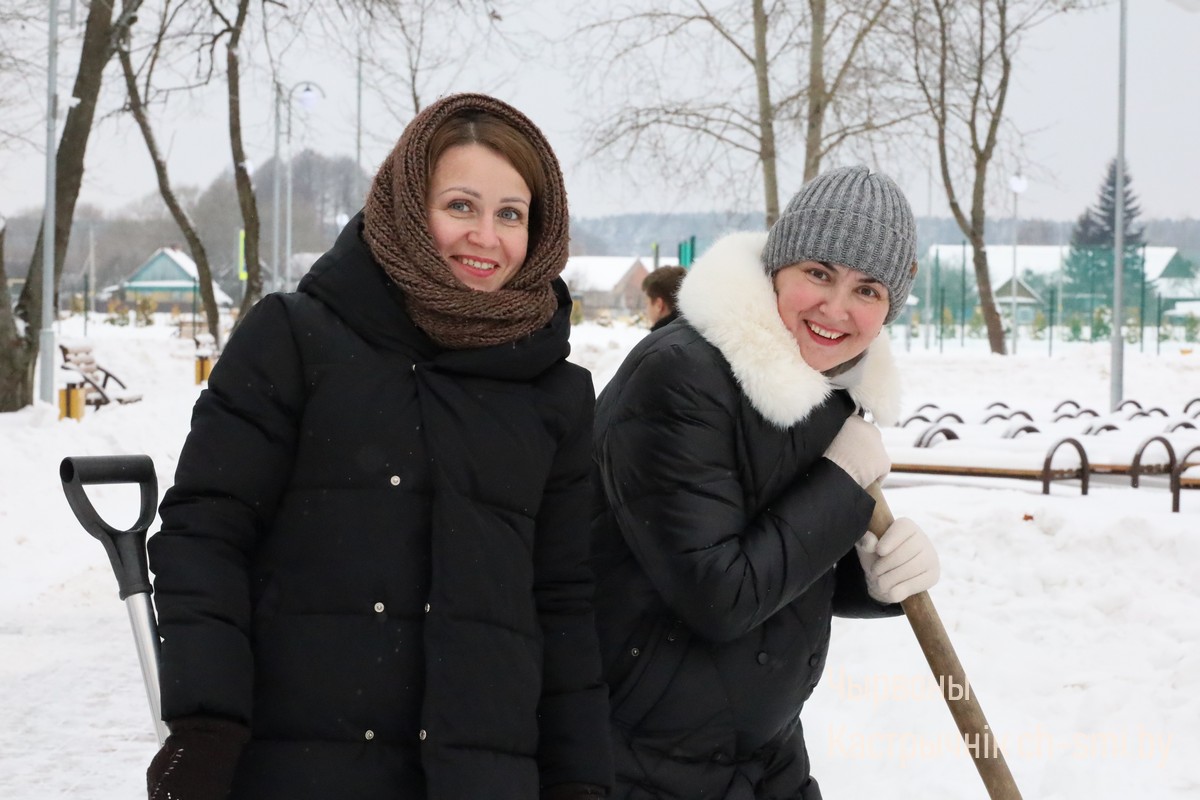 В Октябрьском начали готовиться к празднованию Нового года. Сегодня работники Октябрьского райисполкома во главе с председателем Ириной Намоченко вышли на уборку снега в центральный сквер. Дружно очистили дорожки, чтобы в вечернее время можно было гулять по обновленному скверу, а работникам коммунхоза было удобно развешивать иллюминацию, создавать новогоднюю атмосферу. Тем самым в районе был запущен челлендж по уборке снега. Присоединится к нему приглашаются все организации