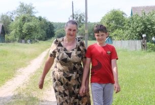 (Встречает депутата на территории своего Совета председатель Протасовского сельисполкома Людмила Вежновец).
