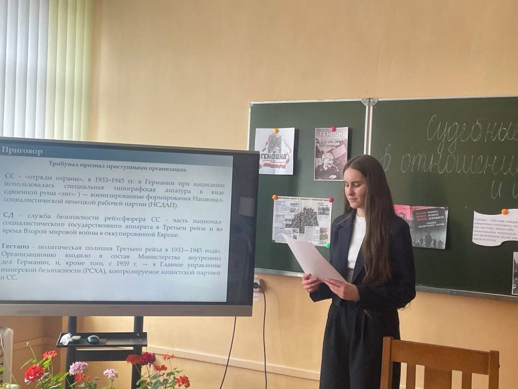 На мероприятиях учащиеся узнали о ключевых аспектах трагических событий того времени, включая темы «Судебные процессы в отношении нацистских преступников и их пособников», «Экономический ущерб, нанесённый немецко-фашистскими оккупантами БССР», а также «Красный Берег: концлагерь короткого детства».