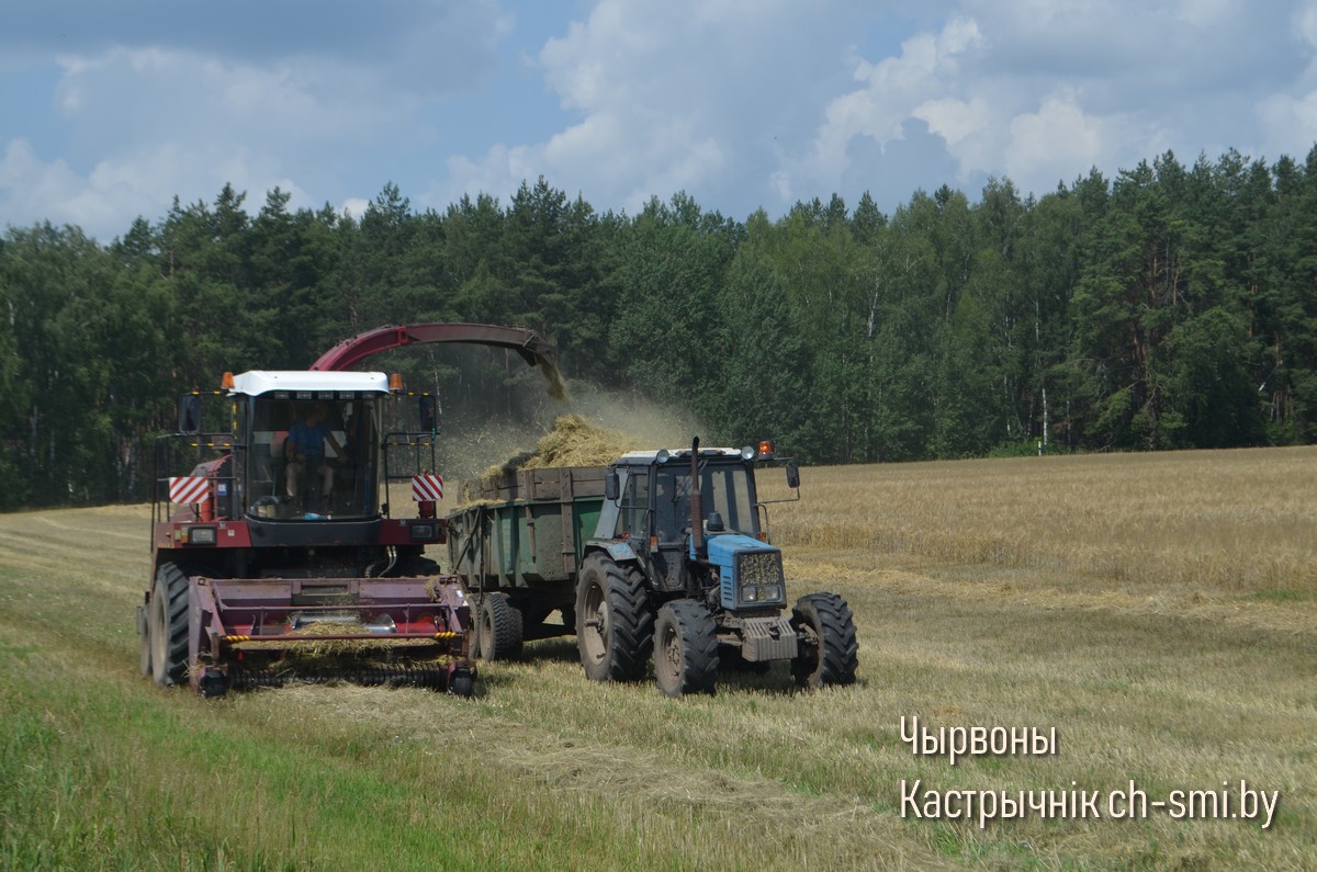 Первыми в районе вывели комбайны на хлебную ниву труженики открытого акционерного общества «Дербин». Было это во вторник, 4 июля. Тогда и назавтра экипаж зерноуборочного комбайна КЗС-12 А1 в составе Анатолия Баранова и Павла Полуяна намолотил 34,3 тонны зерна с 21 гектара убранных площадей озимого ячменя. Урожайность небольшая – 16,3 центнера с гектара, но она пока сложилась таковой ввиду того, что скашивались и обмолачивались наиболее подгоревшие в результате засухи участки. Поэтому и на отвозке зерна от комбайнов на зерноток в Дербин задействован один механизатор Владимир Баграенок, который на тракторе МТЗ-82 с прицепом ПСТ-12 вполне справляется с поставленной задачей. Тем более, что первый этап начавшейся жатвы ведется недалеко от центра хозяйства – сразу за мастерскими и в окрестностях деревни Юрки. Всего же в ОАО «Дербин» перед началом уборочной кампании предстояло убрать озимый ячмень на площади 76 гектаров, еще 24 га пришлось списать, как подгоревшие от недостатка влаги, и перевести их в кормовую группу. Пострадала от жары также и часть посевов озимого рапса из первоначальных 100 гектаров – данную культуру начнут убирать в хозяйстве на маслосемена вслед за озимым ячменем. Тогда же к жатве подключится еще один такой же комбайн производства ОАО «Гомсельмаш», закрепленный за старшим комбайнером Александром Шостачуком. Сейчас этот старательный механизатор также задействован на жатве, только в иной роли: работая на комплексе КВК-800, вслед за зерноуборочным комбайном измельчает солому. Полученная масса сразу же доставляется в траншею, расположенную на территории животноводческой фермы «Рог», для последующей трамбовки и хранения. Таким образом, свежеубранное поле незамедлительно становится пригодным для другого целевого использования.