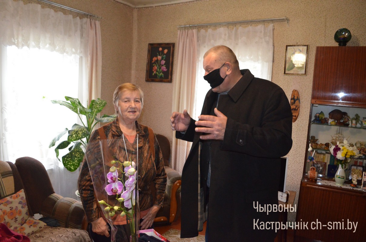 По случаю значимого юбилея Валентины Иосифовны Фастовец ее навестил на дому с поздравительной миссией председатель Октябрьской районной организации профсоюза работников АПК Николай Рагович. Он вручил ветерану профсоюзной отрасли роскошный букет цветов и подарок с искренними пожеланиями ей здоровья, долголетия, оптимизма и активной жизненной позиции.