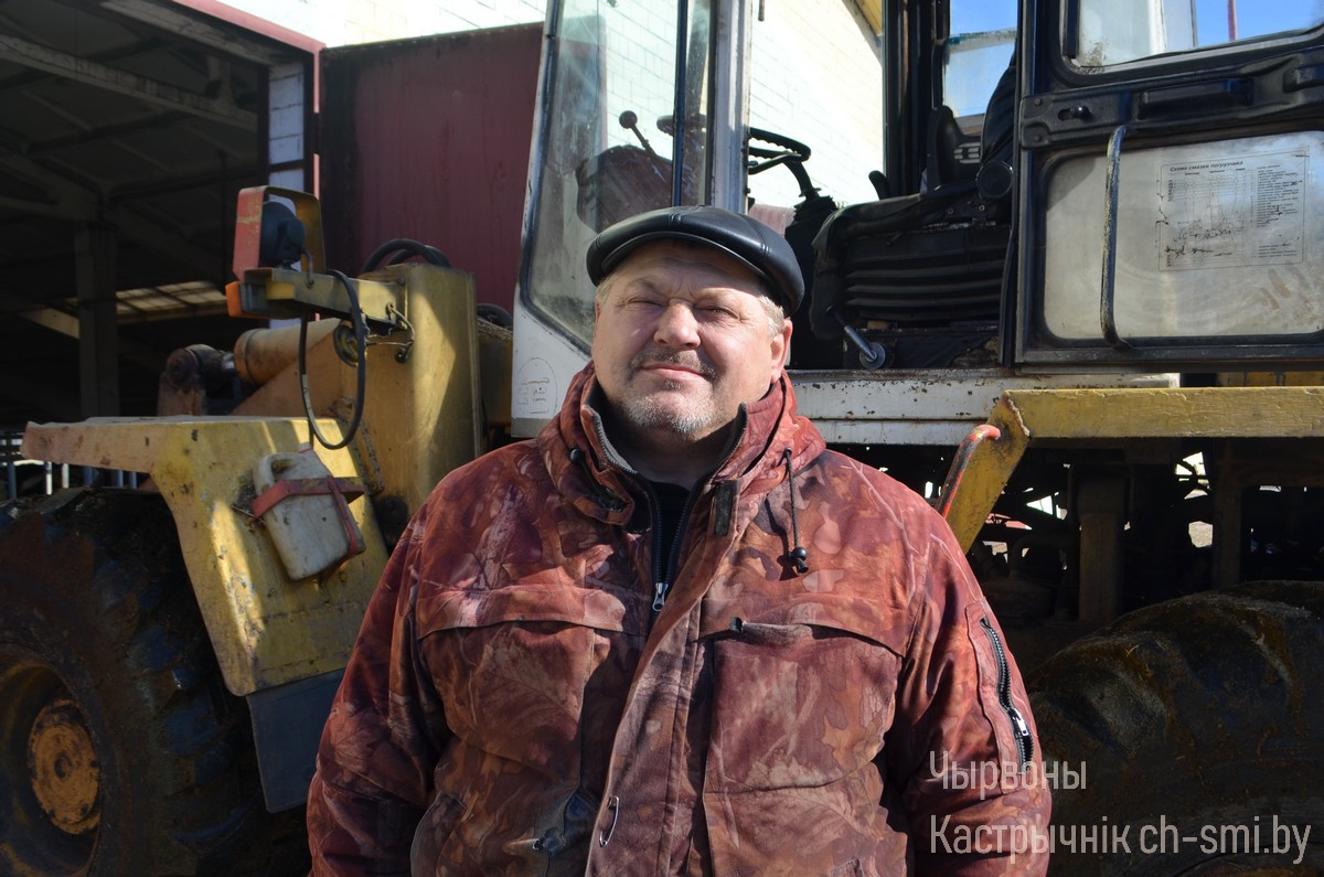 Дело в том, что за Владимиром Владимировичем на протяжении уже 16 лет закреплен, как основная единица техники, погрузчик «Амкодор-332 С». Его механизатор сам получал на заводе в 2006 году, с тех пор на нем неизменно и трудится. Причем, с мощными и сложными машинами Владимир Грабко умело обращался и ранее. Это было как и на его родине в Глусском районе, так и в ОАО «Октябрьский-Агро», где механизатор работает с 2004 года: в уборочный сезон садился за штурвал комбайна, а между ними управлял трактором гигантом К-701 в различных сельскохозяйственных кампаниях.
